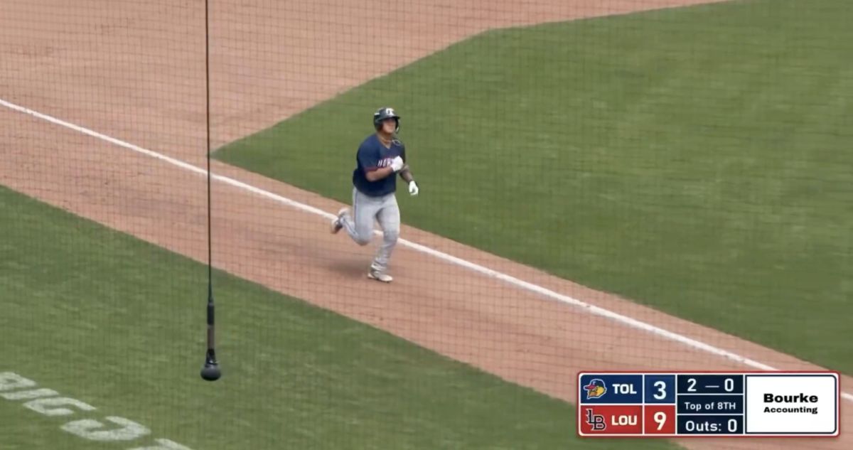 (體育中心/綜合報導)效力底特律老虎3A托利多泥母雞隊的台灣好手李灝宇,16日對上辛辛那提紅人3A路易維爾蝙蝠隊之戰敲出本季首轟,對手正是以火球聞名的右投Luis Mey。這發全壘打出現在8局上,李灝宇面對一顆約98英里、接近157公里的速球,將球轟向右外野,展現反方向長打火力。
