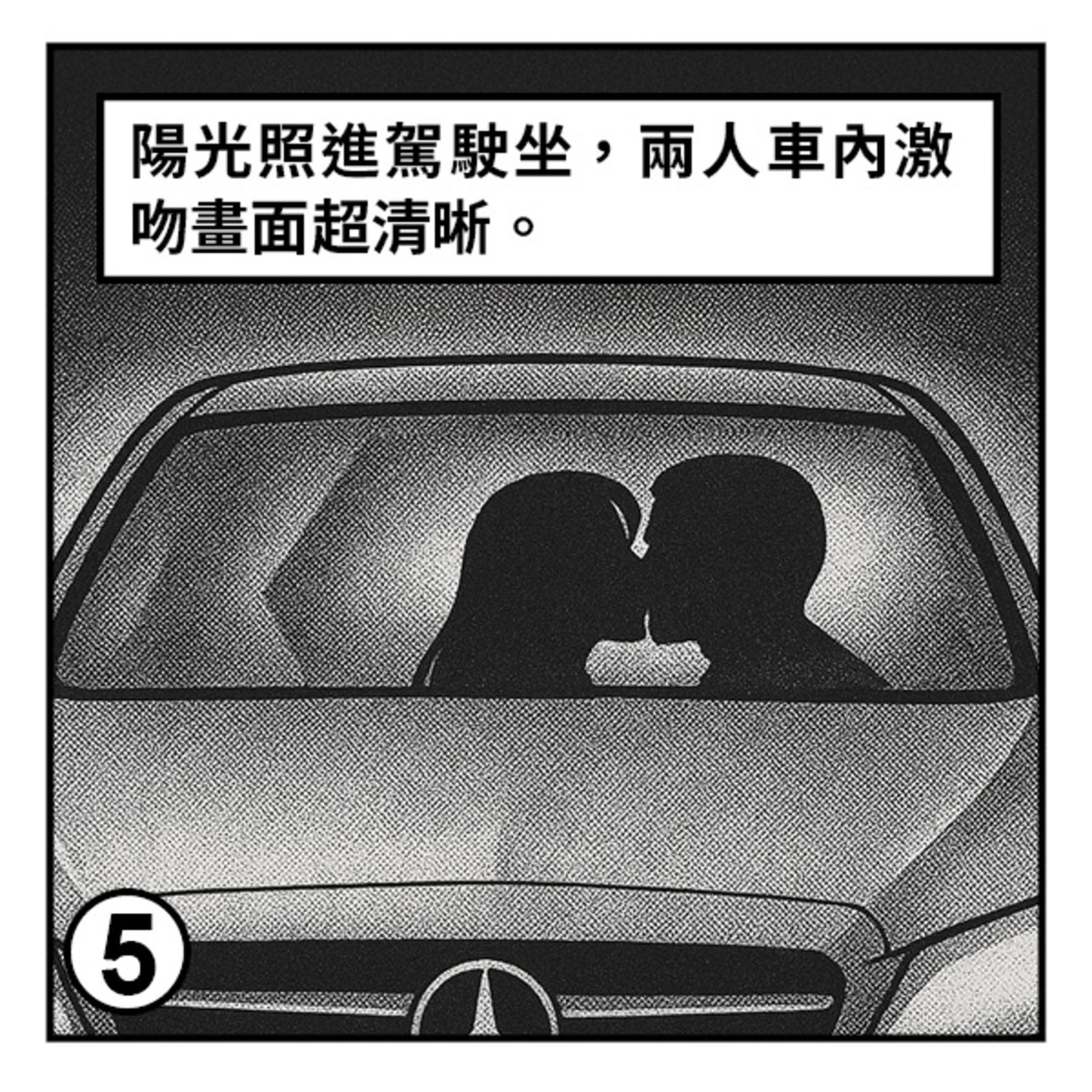 我們平常拍到的是偷牽手、肩靠肩,這次是高速公路上副駕貼駕駛,還閉眼親得很陶醉的那種,畫面實在太難得。我們一邊連拍,一邊在車上尖叫:「拍到了!拍到了!」而且,這個情節還一直持續了20多分鐘。