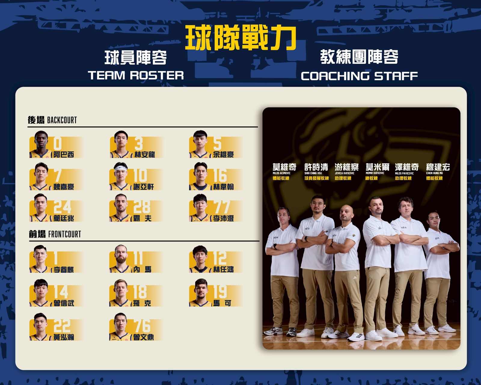 為貫徹中信特攻球風,特務軍團由莫米爾(Momir Ratkovic)總教練執掌兵符,與兩位助理教練-澤維奇(Milos Pavicevic)、游維察(Jovica Ratkovic)並肩作戰,體能教練由莫維奇(Milos Acimovic)與穆建宏負責,許時清除持續擔任球員發展教練外,亦兼任情蒐教練。新賽季將由這六位教練將攜手幫助球隊,全方位強化團隊戰力,迎接每一場挑戰!