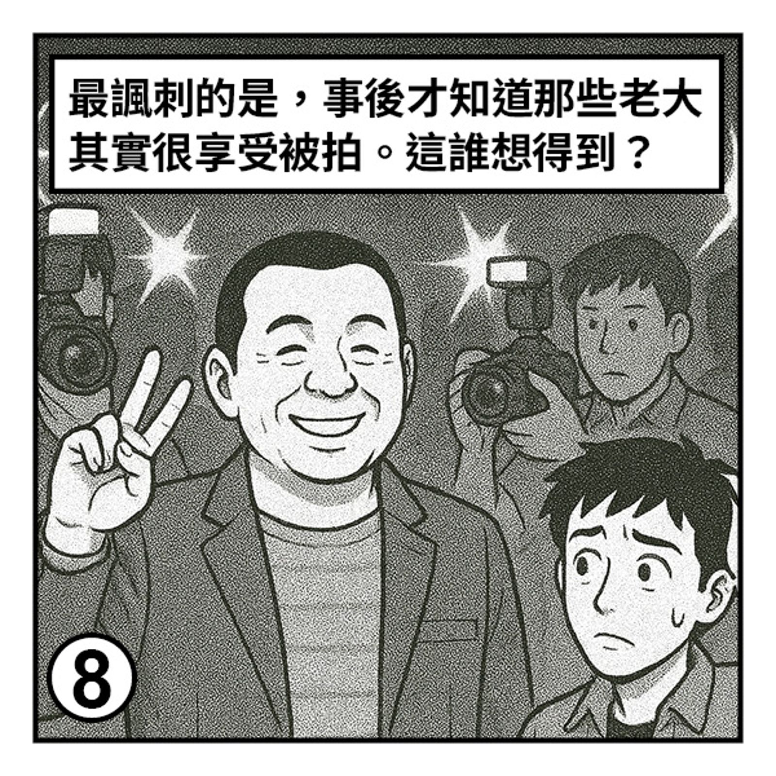 二十多年過去,黑道交接的封面還是周刊史上的代表作之一,而對我來說,那就是狗仔人生的成人禮。從那之後我學到一件事:狗仔的世界,永遠比你想像的更複雜。拍照不只是技術,更是膽量、臨機應變、還有一點點運氣。(本文內容由當事人口述,AI協力完成,經編輯核實無誤。《狗仔回憶錄》每逢週六更新)