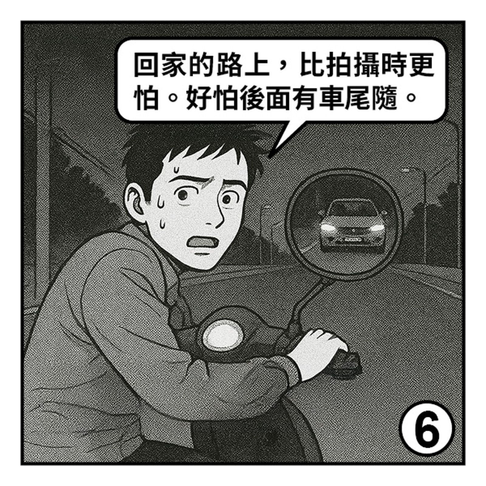 因為是底片機,我壓根不知道自己有沒有成功拍到黑幫老大。最後還得靠外場主管口頭確認老大的衣著,才確定我真的拍到。那一刻,我心裡才鬆一口氣,趕緊收工閃人。回家的路上,我還一直回頭看,深怕後面有車尾隨。