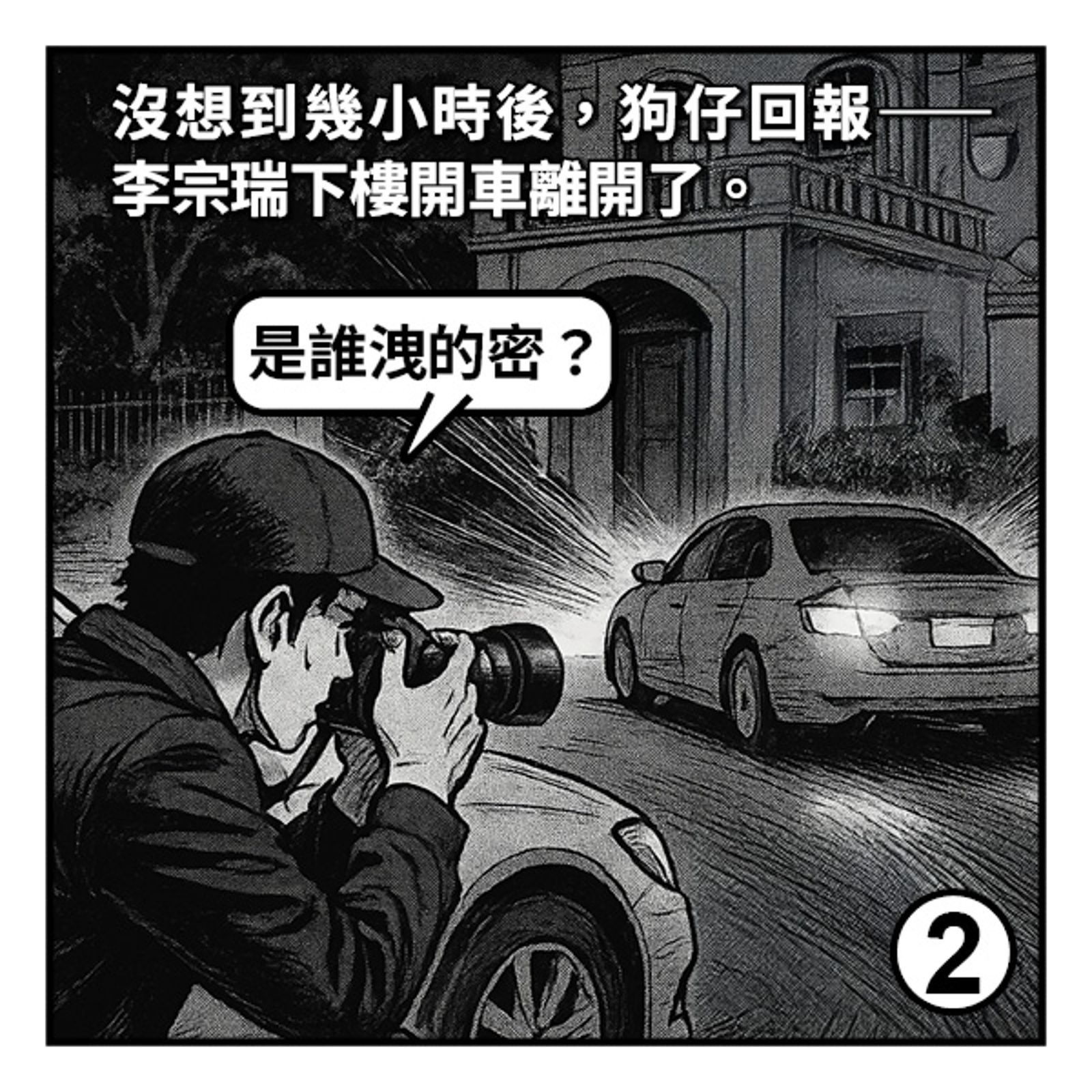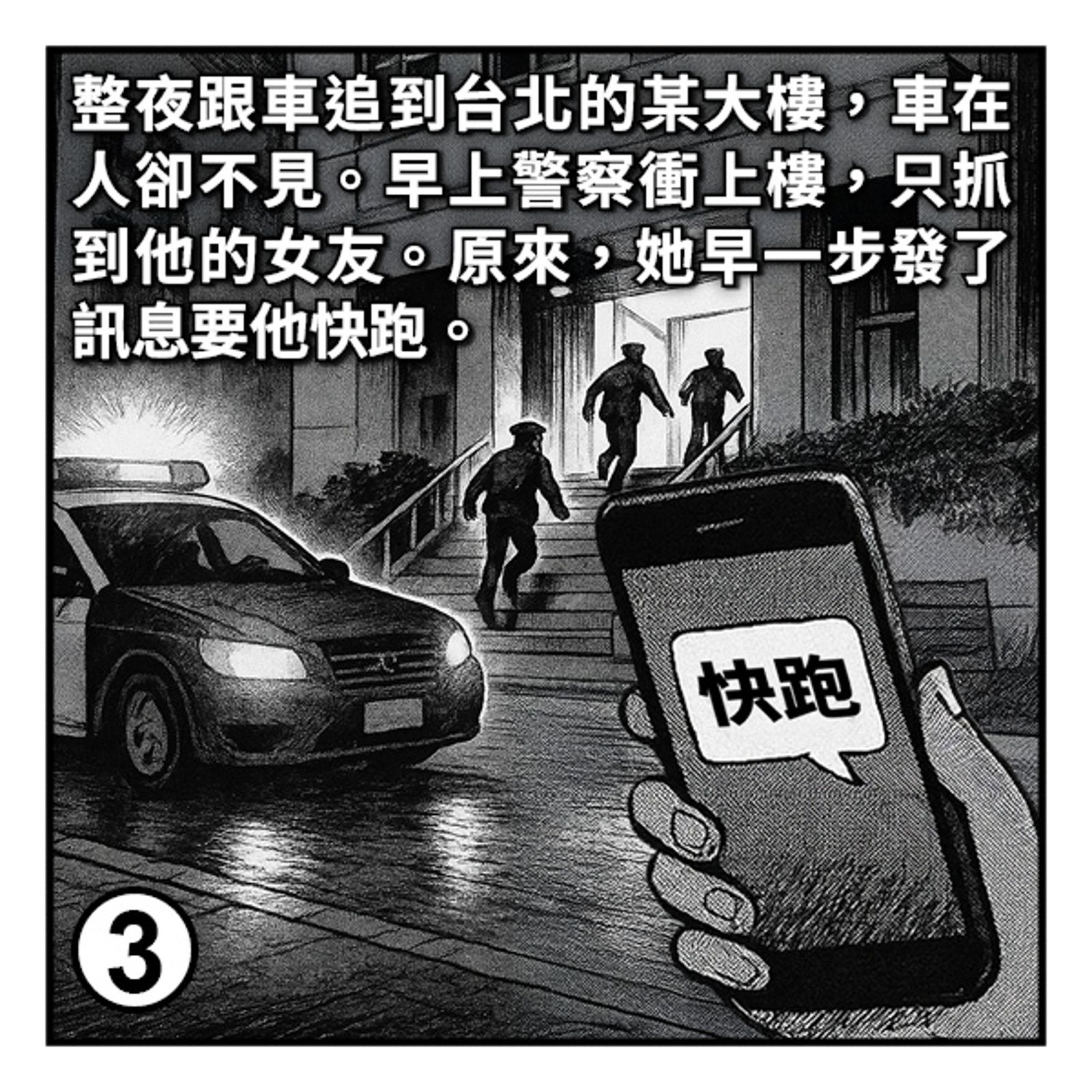 狗仔於是整夜跟車,最後追到台北市某一棟大樓。李宗瑞的車停著,但人影不見。我們馬上通知警方:「車在,你們趕快接手!」隔天清晨,週刊出版後,震撼社會,檢警緊急拿搜索票衝上樓——卻只抓到他的賴姓女友,李宗瑞早就溜了。後來查出來,女友在警察進門前,用微信(那年代幾乎沒人用)發訊:「快跑!」他真的跑了。我聽到那消息時,只能苦笑:「連逃亡都比警察快一步。」