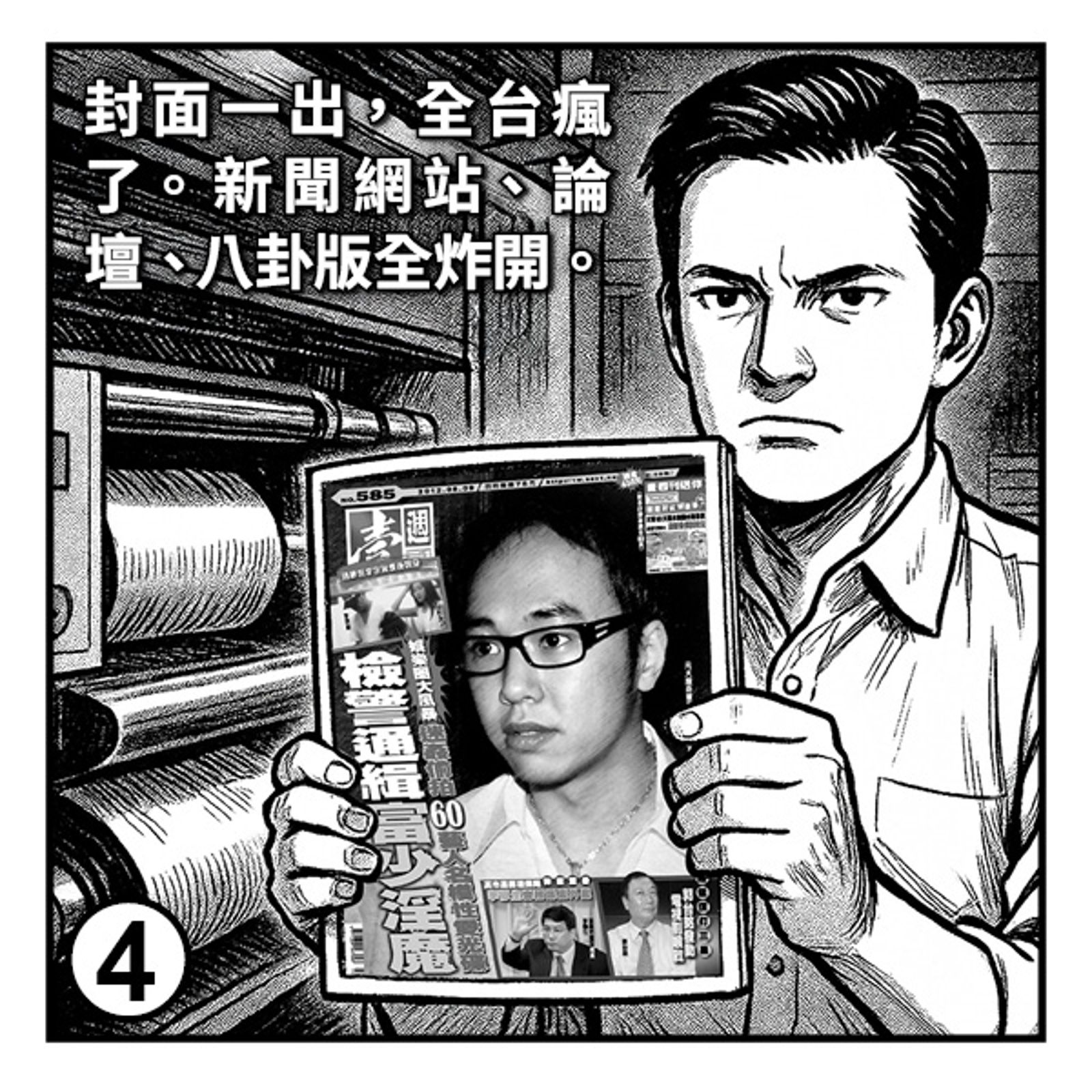 雜誌出版那天,全辦公室的氣壓像颱風眼。封面一出,新聞網、論壇、八卦版全炸開。大家一邊罵「怎麼可能」、「真的假的」,一邊又狂點開新聞連結。我們的報導分四期刊出,第一期是揭露犯罪事實,接下來三期,接力追蹤他潛逃期間密會竹聯幫老大、起底與被害人現身。
