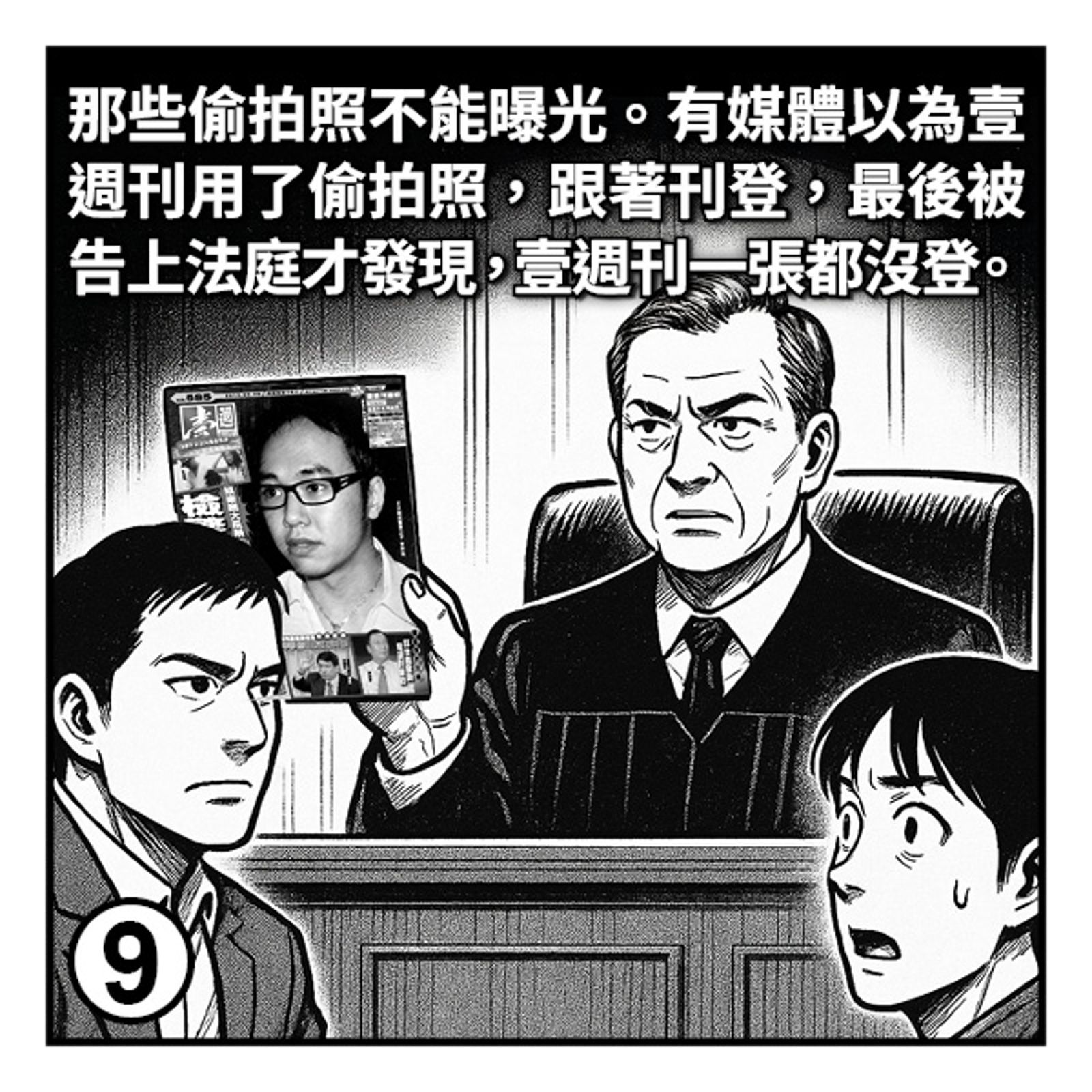 許多媒體人在法庭上,辯稱他們是看到壹週刊登了偷拍照才跟進刊登的,沒想到法官當庭拿雜誌給被告看,他們才驚覺原來《壹週刊》一張都沒登。