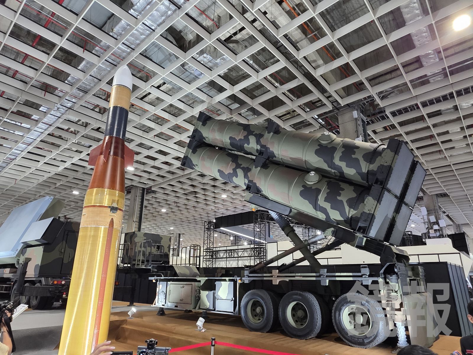 「強弓」反彈道飛彈系統,主要由強弓飛彈本體、發射車和車載射控雷達組成。(圖/王烱華攝)