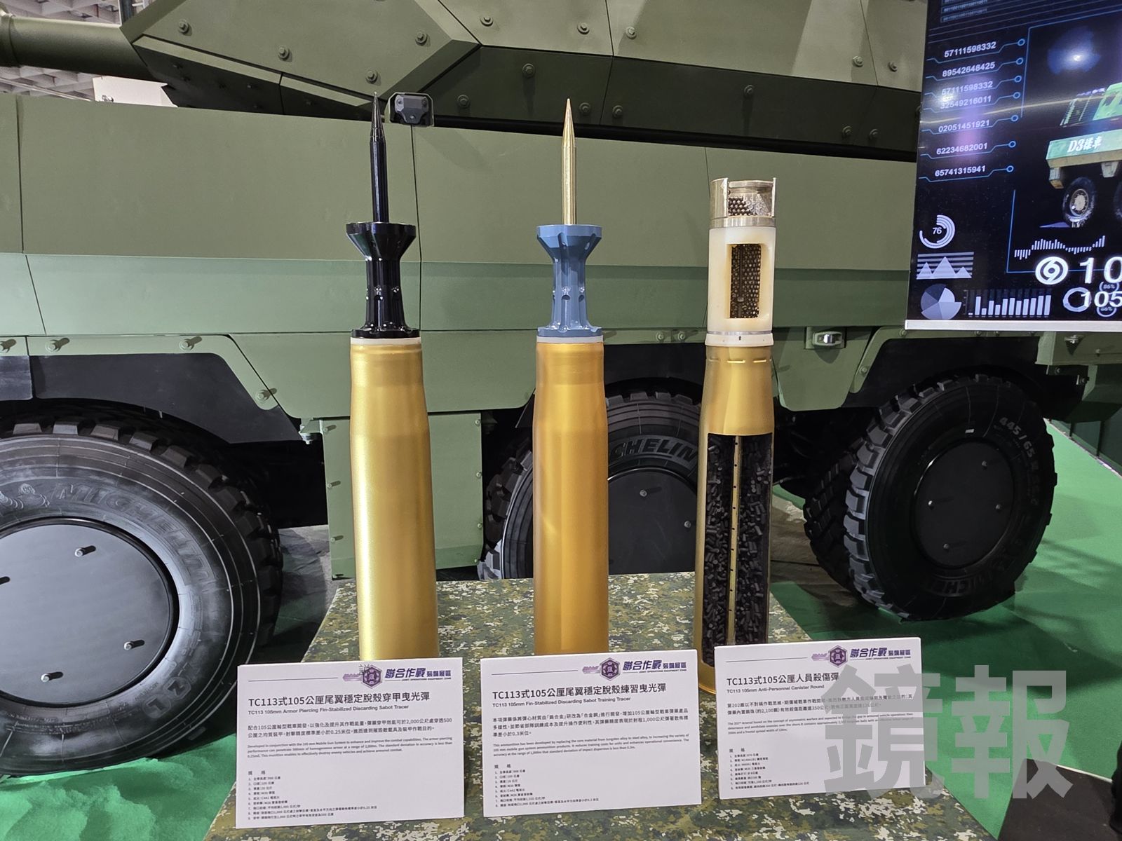 軍備局針對「獵豹」戰車,特別研制105公厘尾翼穩定脫殼曳光彈(圖左)及105公厘人員殺傷彈(圖右)。(圖/王烱華攝)