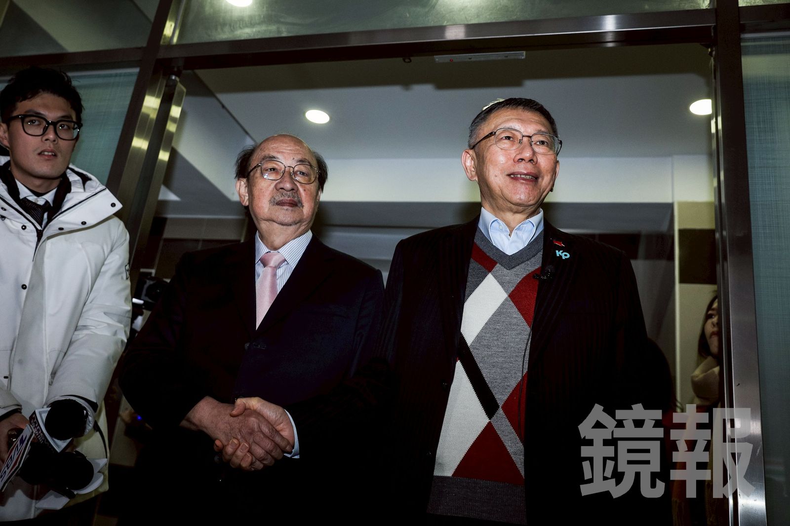柯文哲與柯建銘上樓會談15分鐘後旋即結束,一同搭電梯下樓接受媒體聯訪,2人也在鏡頭前握手合影,氣氛融洽。