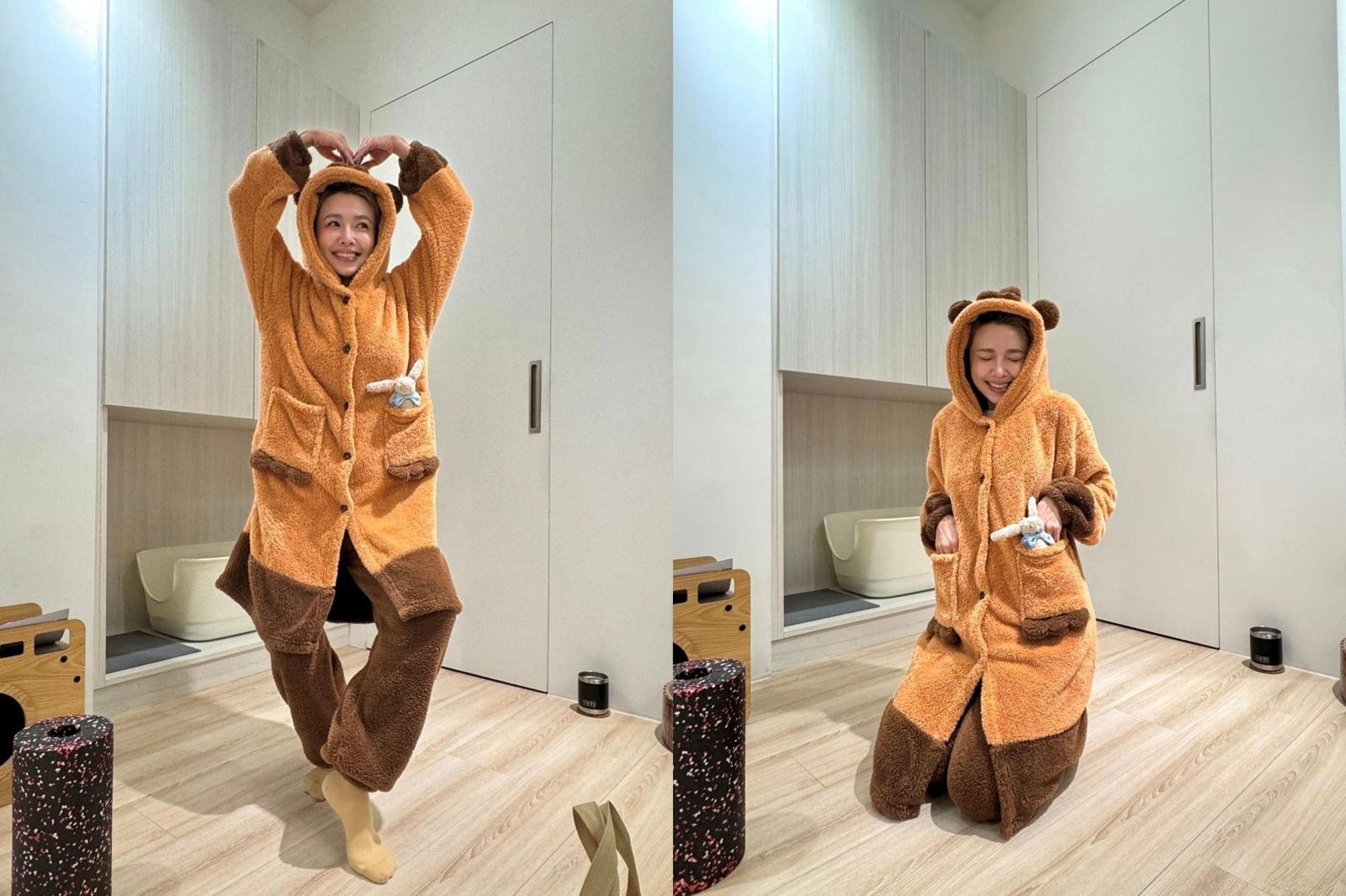 吳婉君特別介紹,睡衣帽子上是超療癒的「水豚君」臉龐,口袋裡甚至還塞了一隻陪睡的「摸摸兔兔」,整體造型完整度極高。她感性表示:「願2026可以像水豚君一樣淡然自在。」