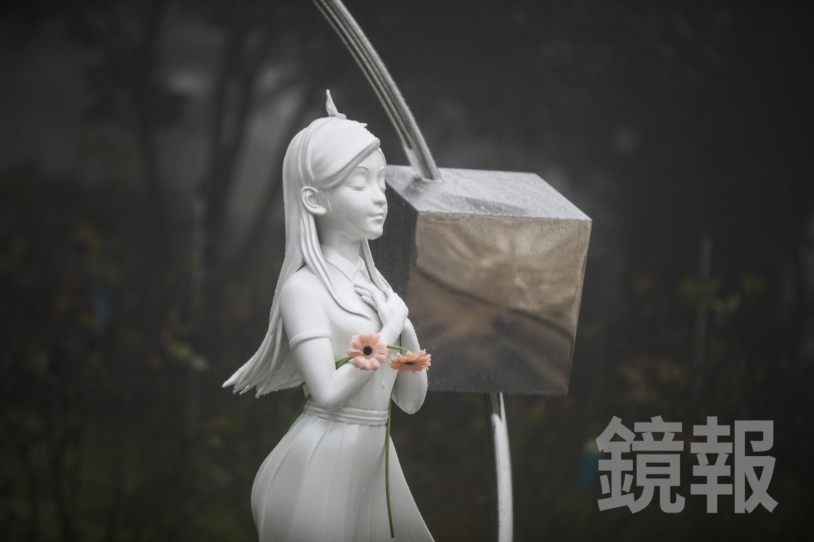 這座「熙媛的永恆軌道」雕像精準捕捉大S少女般的安詳神情:頭戴蝴蝶結、長髮飄逸、身穿連身裙、雙手交疊胸前輕閉雙眼,裙擺與髮絲彷彿隨風揚起,栩栩如生,宛如永遠停留在最美好的時刻。