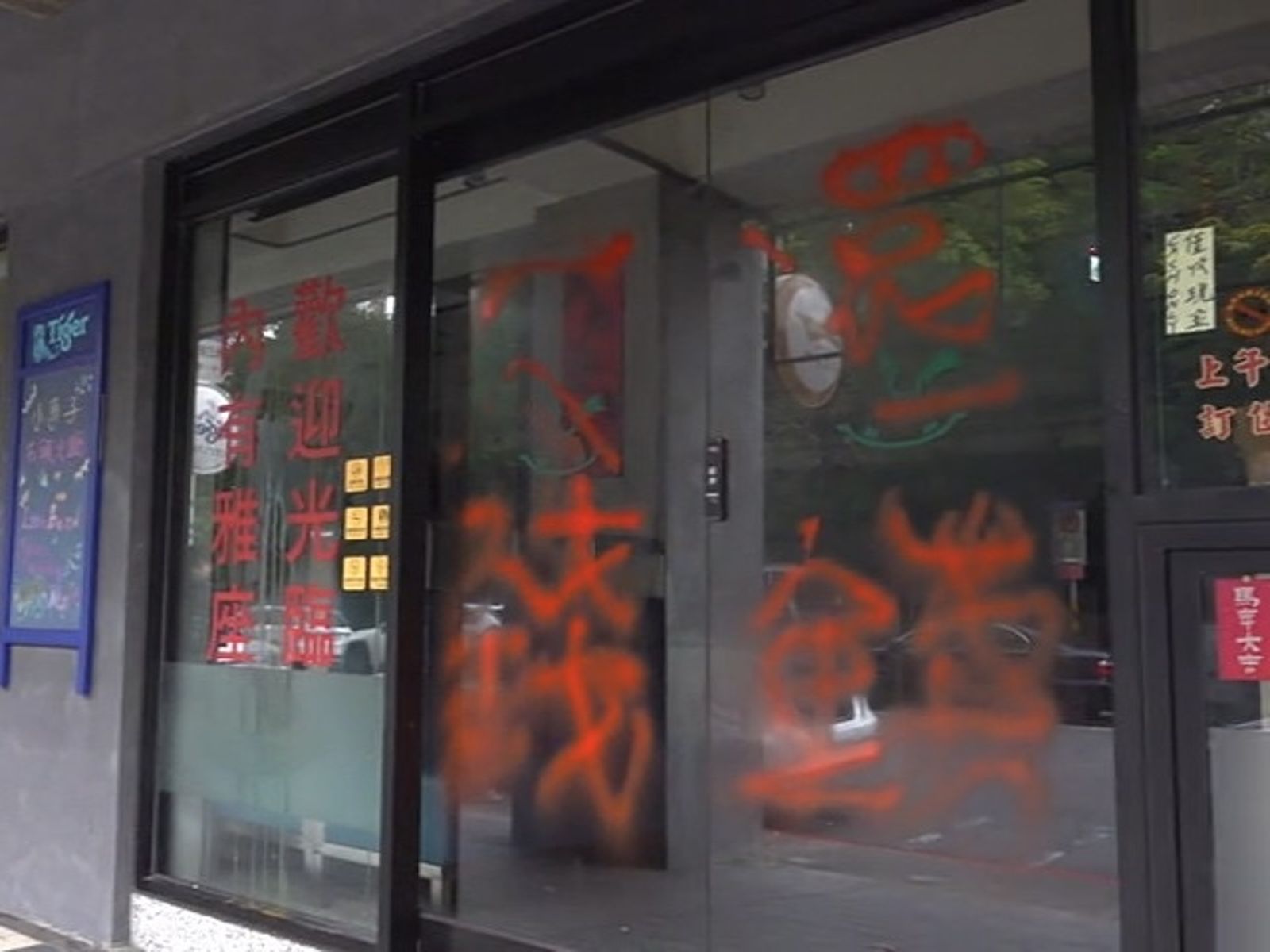 據了解,事發於7日晚間21時許,一名戴口罩男子在萬華成都路上一間名為「小馬子石頭火鍋」的店門口徘徊,先是朝店內查看,隨後從手提袋中取出紅色噴漆,在玻璃大門上噴寫「欠錢還錢」字樣,接著又拿出雞蛋朝店面猛砸,導致門口及地面留下蛋液痕跡,過程毫不避諱來往行人。