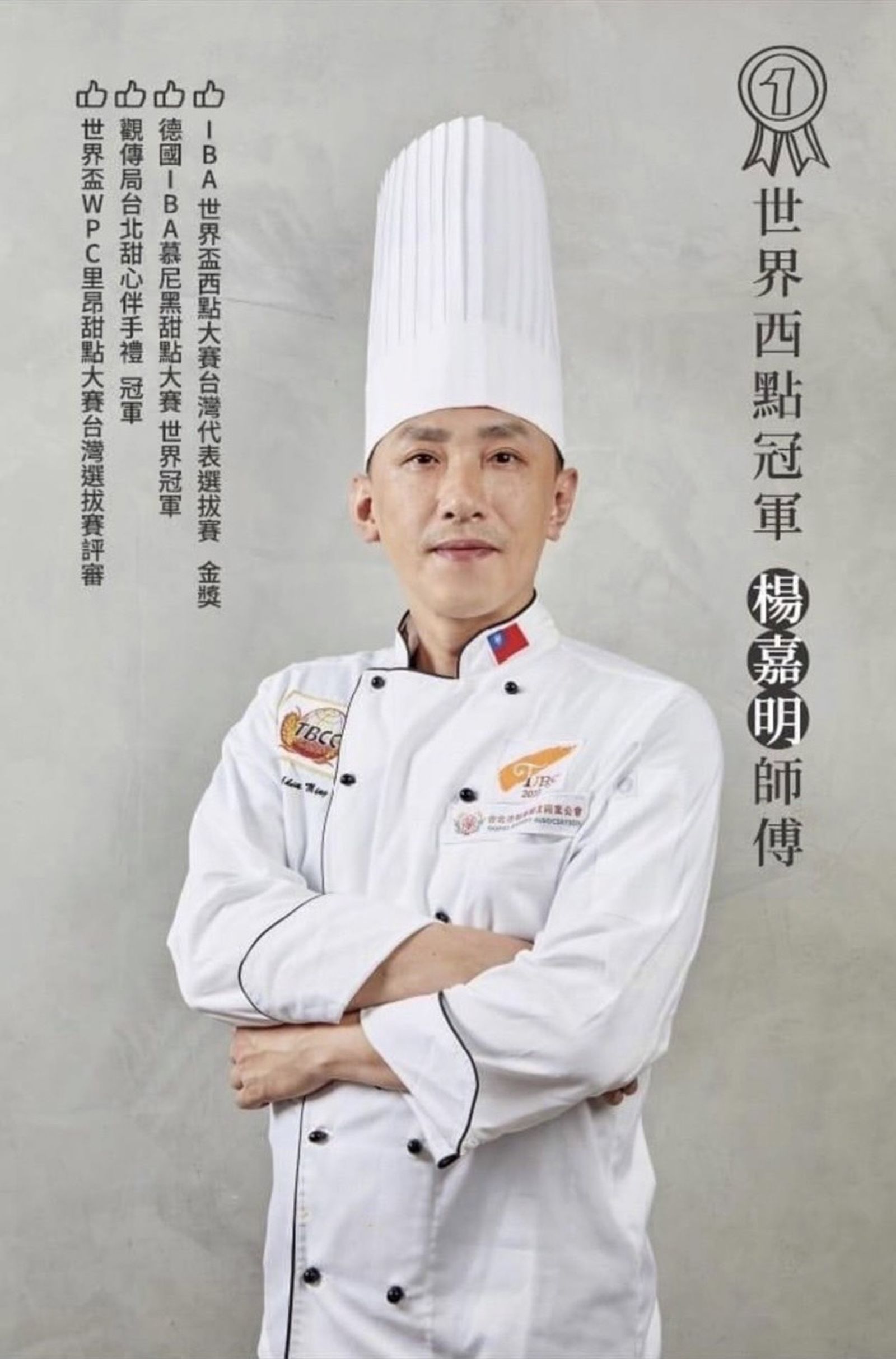 楊嘉明師傅出身基隆糕餅世家,曾於2015年代表台灣參加德國IBA慕尼黑甜點大賽,榮獲世界冠軍。多年來,他將比賽經驗與對食材的敏銳度結合,打造出一系列結合台灣在地風味與國際技術的烘焙商品。