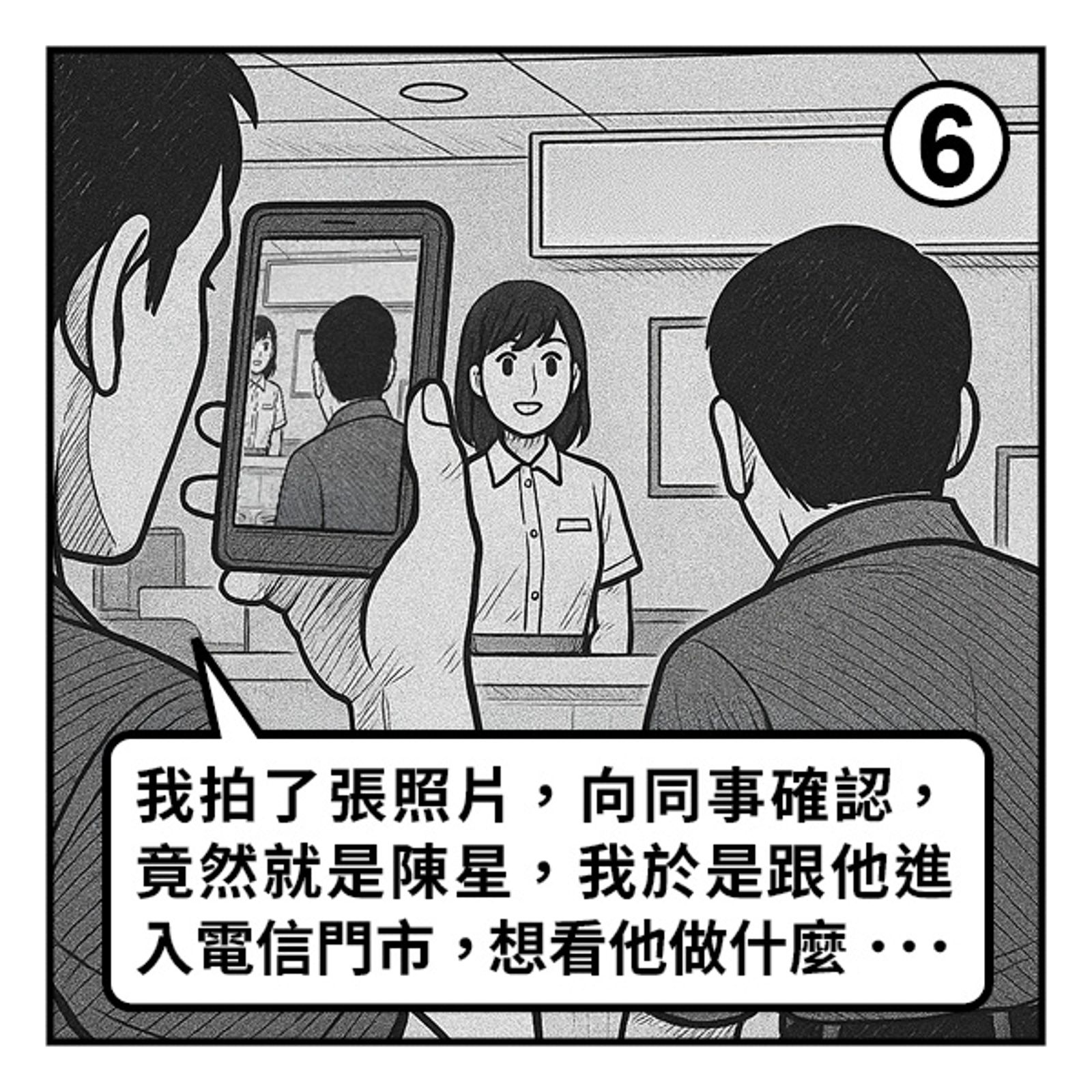 我們立刻在愛玉店集合開始行動,有人下車跟拍,有人留守車上,他跟一位女性走進遠傳門市,我跟著走進去佯裝客人,順便偷聽情報。