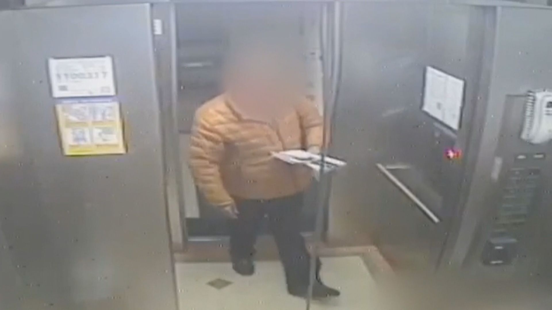 黑衣女走進電梯,拎著包包準備返回住處,沒多久,穿著橘色羽絨外套的保全也搭電梯上樓巡邏,結果隔了幾分鐘,他離開時卻背著女子的包包下樓,到底怎麼回事?