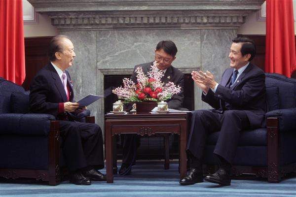 海部俊樹(左)2012年來台時,曾與時任總統馬英九(右)會面。(總統府提供)