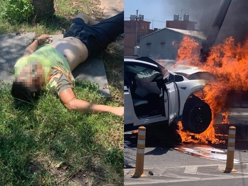 據悉,目前傷者狀態意識清醒,可能有脫臼情形,傷勢較同行的小朋友嚴重,不過傷者從車內被現場民眾拉出時滿臉是血。消防人員則表示,車禍時間發生在10點52分,獲報時得知車禍車輛為特斯拉所以特別注意,先叫水庫車支援,到場後迅速撲滅火勢,起火原因仍在調查中。