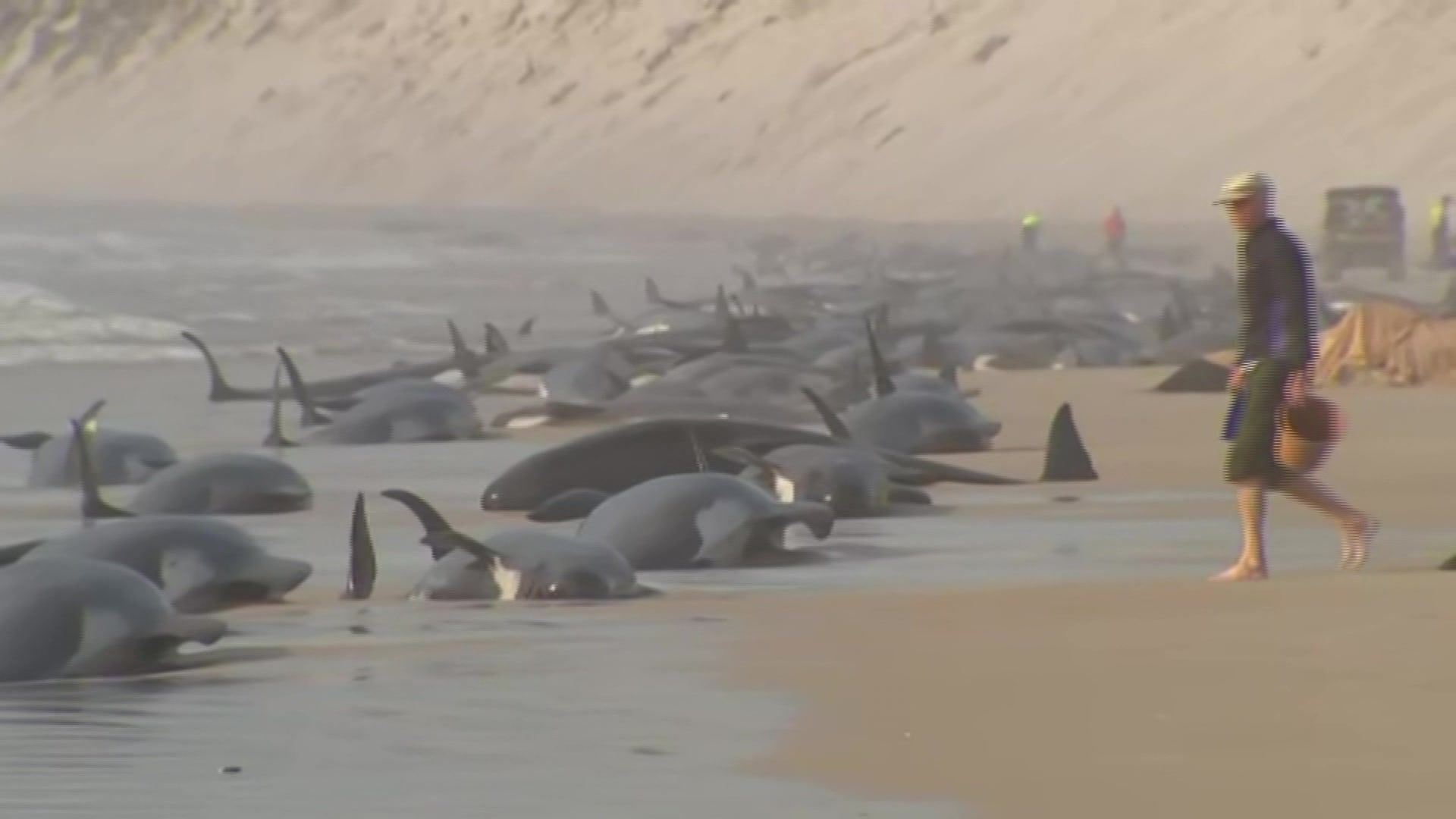 塔斯馬尼亞州自然資源與環境署21日表示,大量領航鯨在麥夸利港(Macquarie Harbour)附近的海灘擱淺,南極洋冰冷的海水不斷拍打,卻只有一半生存,海洋保育專家和工作人員已帶著救援裝備趕赴現場。到了隔天,該州的野生動物管理局遺憾表示,海灘上目前只剩下35頭鯨魚倖存,工作重點也從搶救,轉向全力將還活著的領航鯨送回海洋。