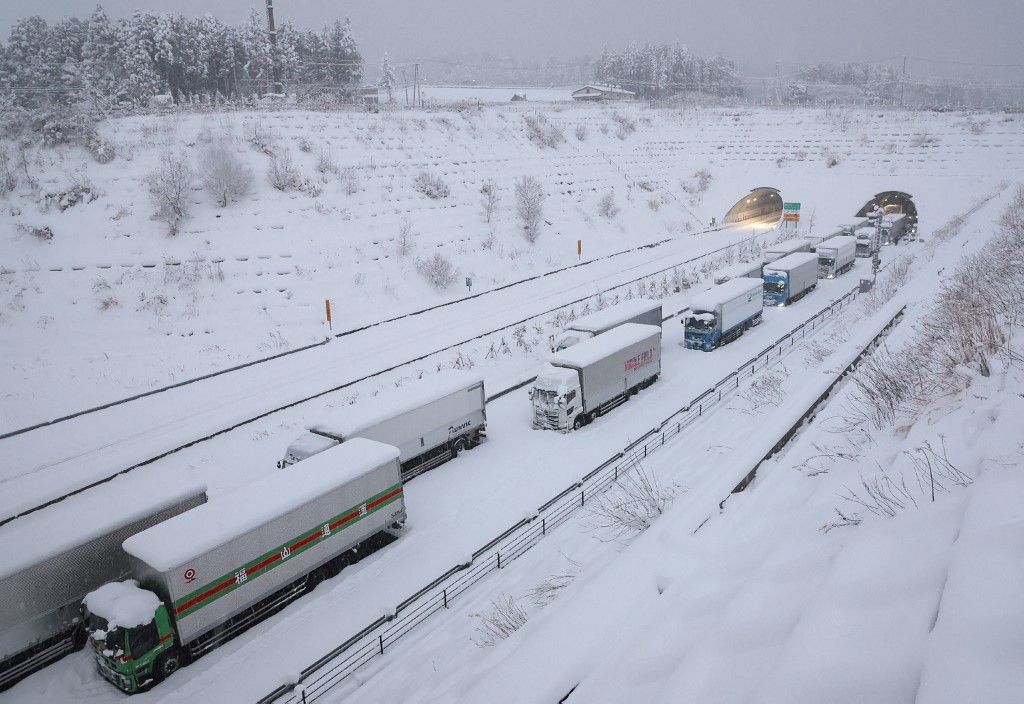 滋賀縣的馬路上,也陸續出現車輛輪胎打滑動彈不得,只能派人用力推車。京都車站內,擠滿了搶搭電車的人潮,大雪導致多條線路延誤,原定的時刻表被打亂,又由於安全考量限制人數進站,場面一度混亂。JR西日本京都到大阪路線,24日晚間發生多起轉轍器故障,導致至少15列電車延誤,乘客只能在擁擠的車上乾等,甚至發生旅客過度換氣的緊急狀況。