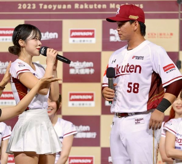 南韓職棒啦啦隊成員李多慧,本季加盟樂天桃猿啦啦隊「樂天女孩(Rakuten Girls)」,有「勝利女神」稱號的李多慧,4日登場應援,樂天桃猿也以11比6取勝,賽後頒發單場MVP時,李多慧對著球員廖健富甜喊「辛苦了」,充滿粉紅泡泡。