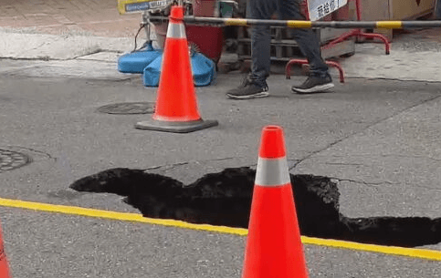 疑似因為水管破損,加上大雨,讓地面下的土壤流失,才造成道路凹陷,天坑大約出現在2日中午11點50分左右,幸好車主反應快,感覺到不對勁之後就加速通過,才沒有掉落洞裡,其實在今年6月,安平區府平路也曾經出現過天坑,不過好在都沒有人因此受傷,以上是現場最新情況,先將鏡頭交還給棚內。