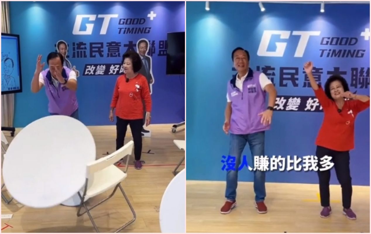 鴻海集團創辦人郭台銘,為加入2024年總統大選,在全台展開連署活動,希望在藍綠白夾殺之下創造聲量,他出奇招走年輕路線,邀請網紅「哩賀阿嬤」到連署站「翻桌」,並隨著洗腦旋律〈我姓郭〉跳舞,歌詞裡「我姓郭,沒人賺的比我多」俗擱有力,無厘頭情節已逾50多萬人次觀看;雖然創意值得嘉許,不過許多網友卻留言「投柯」、「好的爸,我投柯」。