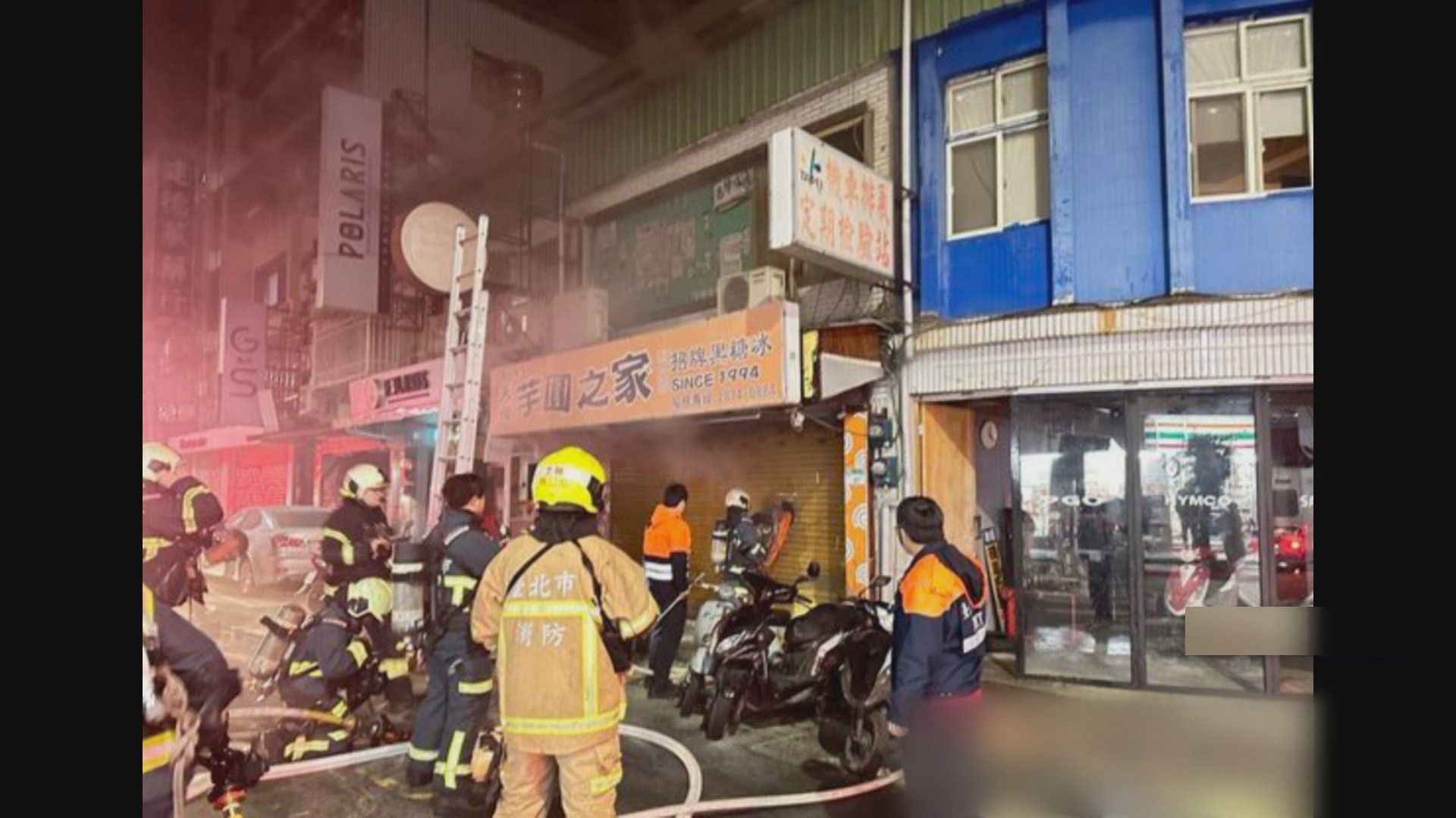 台北市士林區天母東路的知名冰品店「芋圓之家」,今天凌晨傳出大火,現場竄出陣陣濃煙警消到場立刻佈水線灌救。