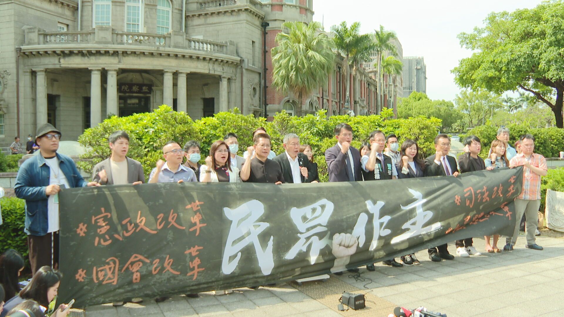 柯文哲9日上午率領民眾黨團立委到監察院門口舉辦記者會,宣布「第三波民主改革,519草根行動」啟動,將在5月19日下午2點到4點,於民進黨部前北平東路舉辦封街集會,活動訴求為「憲政改革、司法改革、國會改革、媒體改革」。