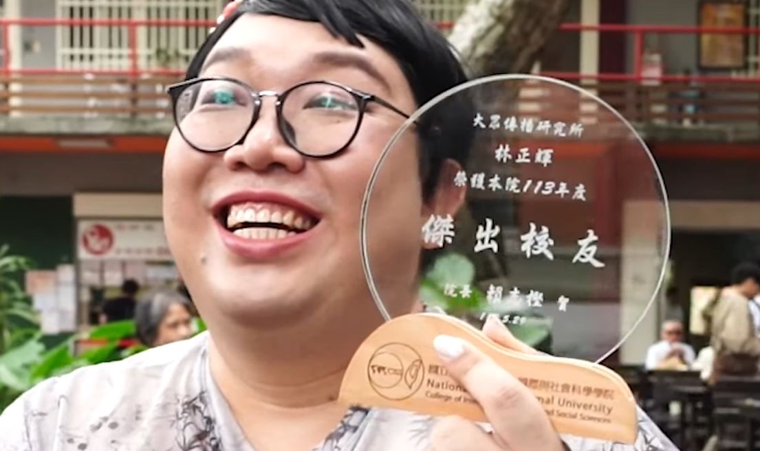 回到母校,娘娘精心打扮,網友關注到她的一整排髮夾直呼「妝髮好漂亮」,娘娘將領獎過程拍成YouTube影片,標題就是《萬萬沒想到我居然獲得臺師大傑出校友獎》,高中時期娘娘林正輝是超級哈台族,2016年來台就讀國立臺灣師範大學大傳所,研習三年多畢業,娘娘說:「當年指導教授鼓勵我去拍片」,然後她乖乖聽話,拍了片「打拋豬加番茄就是死罪」,賺到了錢活得好開心,她謙虛表示自己故事很「粗糙」,但她認為都得到專業學術人士的認可了,不必在乎別人眼光,「其他人是個屁,我就厚臉皮來領獎了」。
