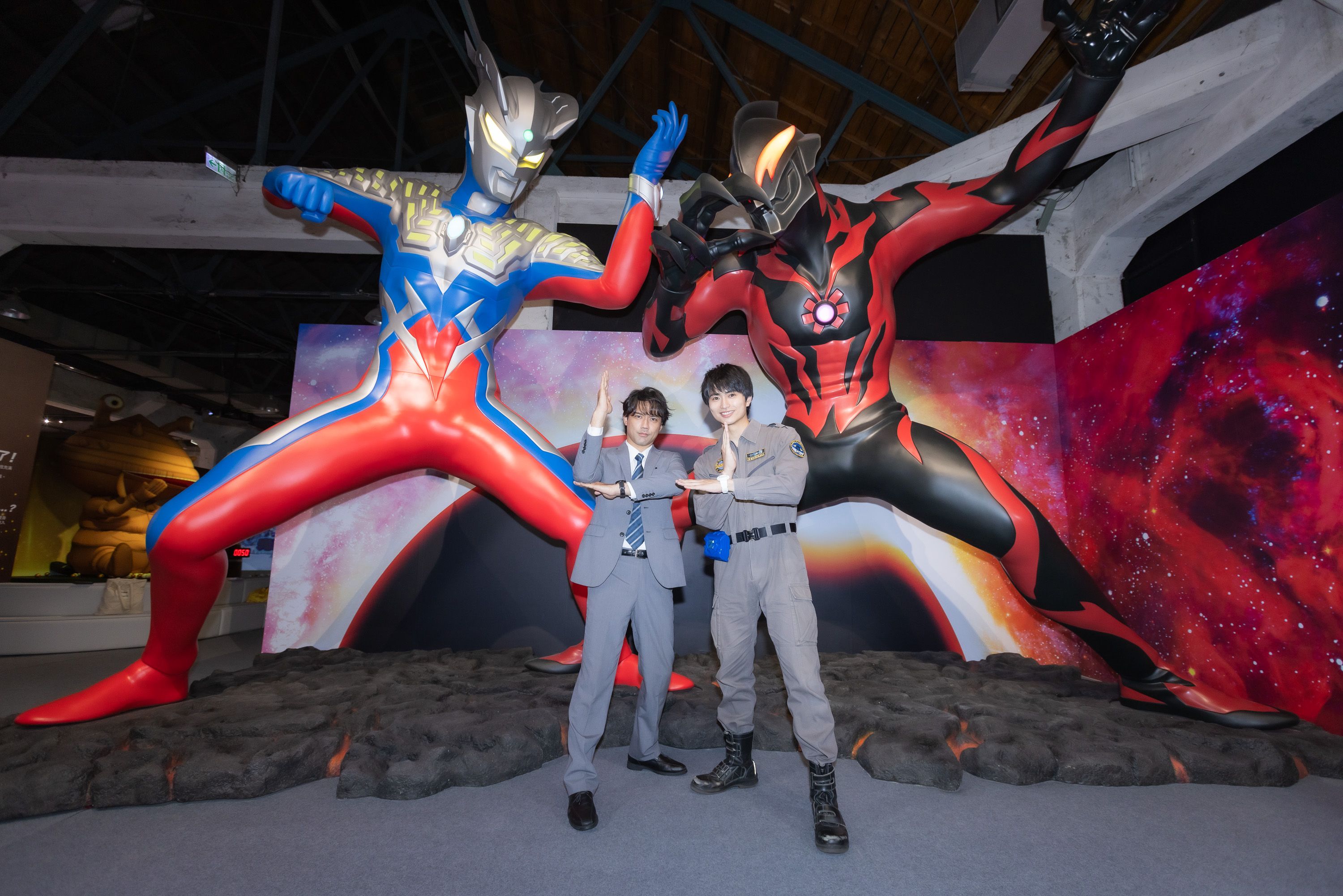 兩人在系列作品中是師徒關係,但並未一起演過戲,就連在日本做相關宣傳都不曾同台,這次他們齊為特展來台宣傳,小澤雄太笑說:「我們是世界首次同台!」平野宏周也透露很開心能與小澤一起來台宣傳,「他對我來說是很可靠的大哥,我們私下雖也沒見過幾次,但就是會想全心信賴他,我們新世代的超人力霸王們有個取名『新世代』的群組,就是小澤把大家串起來的,就像是隊長般的存在。」