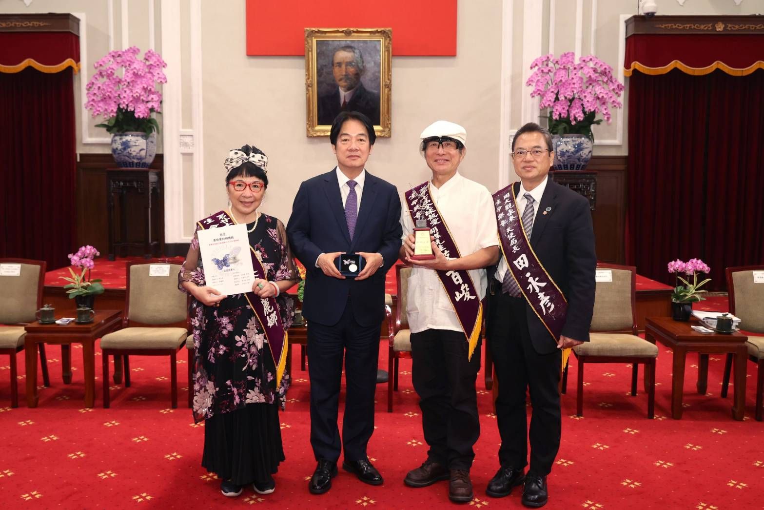 賴清德總統日前(9/27)日下午接見「第27屆全球熱愛生命獎章」得獎者,他在接見時感謝所有得獎者克服個人困境、創造屬於自己的生命價值,並透過自身故事帶給無數人希望與力量。其中臺灣拍攝蝴蝶種類紀錄保持人「蝴蝶先生」蔡百峻與「蝴蝶夫人」蕭麗娜,兩人致力傳播臺灣蝴蝶、推廣全球生態藝術的卓越貢獻,脫穎而出,獲得此殊榮。兩人在獲總統接見時,特地獻上蝴蝶造型紀念品,巧妙的是這個紀念品相當精巧,一轉動猶如就看到活生生蝴蝶舞動飛翔,讓總統相當開心。