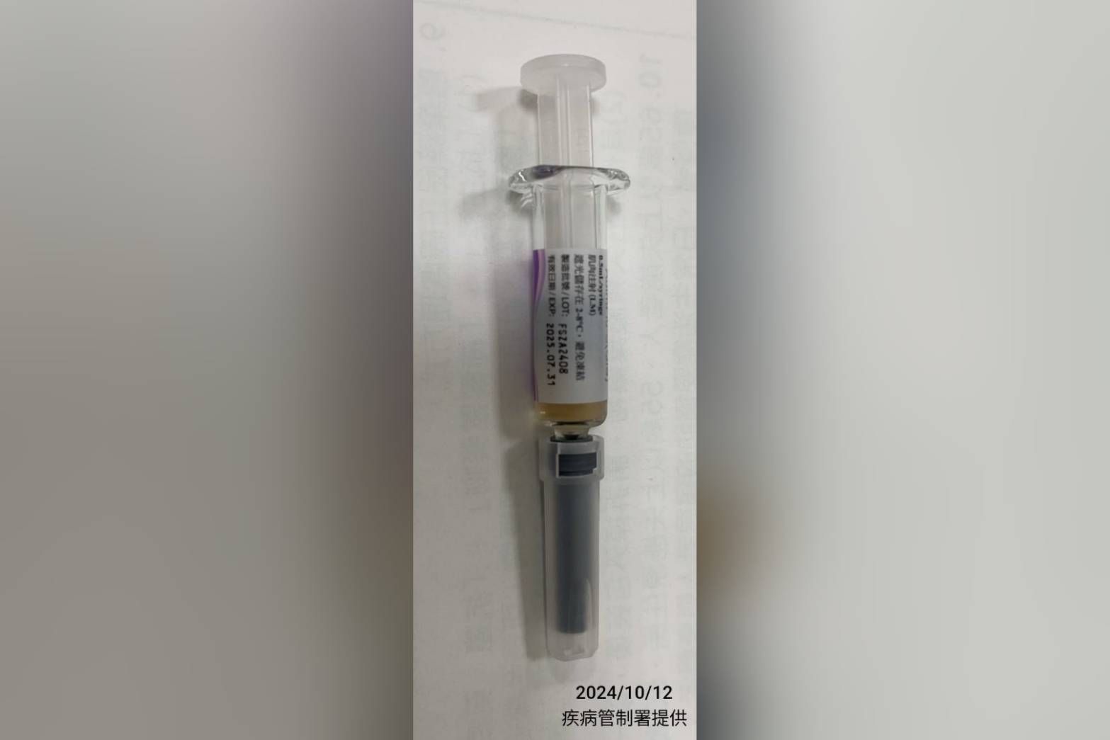 衛福部疾管署今(12日)發布新聞稿,指出今(12日)接獲基隆市衛生局通知,七堵區衛生所通報於10月12日流感疫苗接種前,主動發現1劑目測外觀變色之國光流感疫苗,當下即保存該變色疫苗並依程序通報,並未提供接種。經清查該衛生所內同批號(FSZA2408)疫苗,未發現其他疫苗有類似情形,同時立即通報食藥署啟動相關機制進行調查釐清。