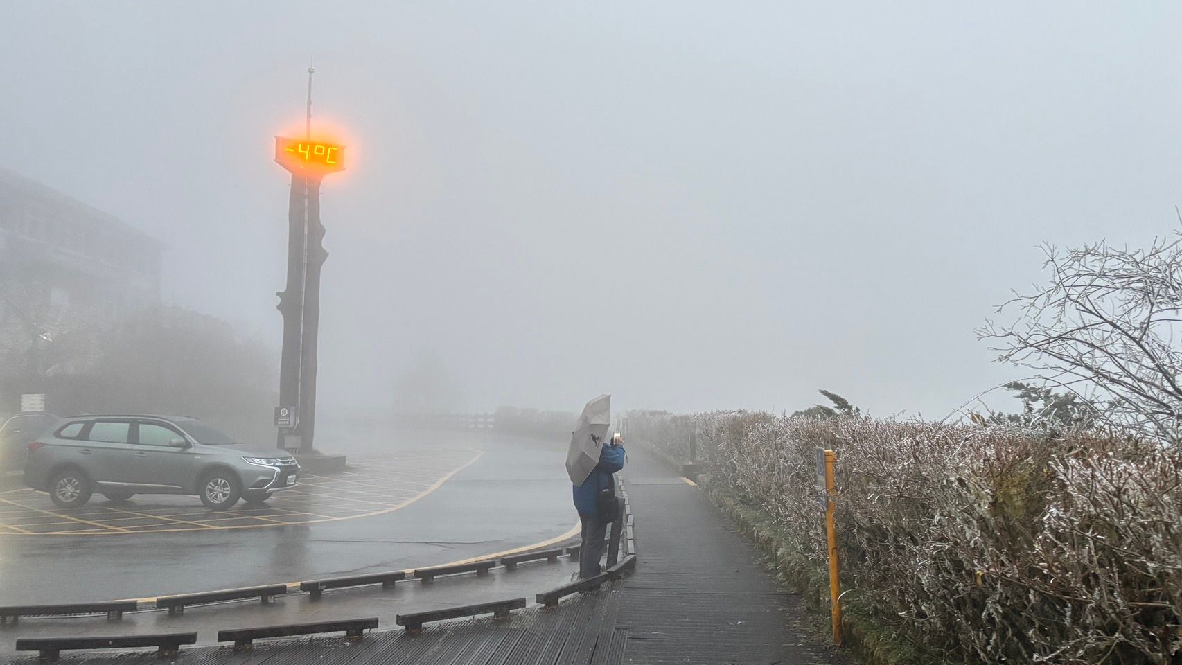 今(19日)受到大陸冷氣團影響,中部以北及東北部偏冷,西半部及東北部低溫11到13度,北部及東半部高溫僅15、16度。桃園以北、東北部、東部及西半部山區有局部短暫雨,其他地區也有零星短暫雨,氣溫低加上水氣,中部3,000公尺以上及北部、東北部2,000公尺左右或以上高山有出現結冰、霧淞或零星降雪的機率,宜蘭太平山今天清晨4、5點下冰霰,太平山莊外野有霧淞美景。