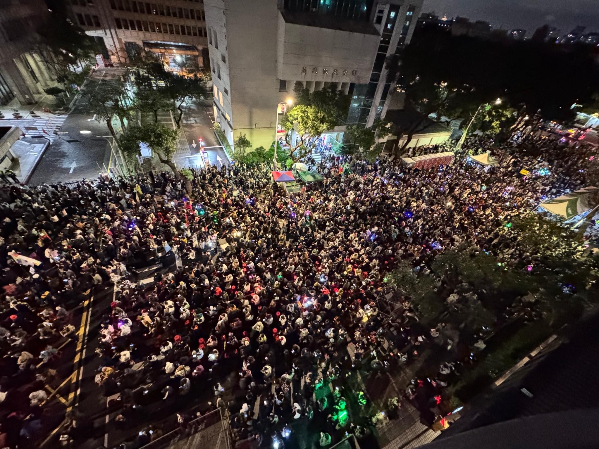 立法院今(20日)排審3大爭議法案,經濟民主連合等公民團體號召青鳥在立法院外抗議,立法院內外都進行延長戰,隨著夜越來越深,青鳥冒著低溫細雨集結,蔓延至中山南路口,現場喊出人數超過2萬人,並且將會奮戰到12點。