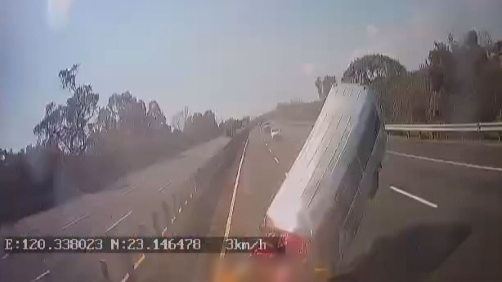 民和國中棒球隊15日結束高雄移地訓練後,分兩車回嘉義,途中由許姓教練駕駛的廂型車,疑因閃避不及,在國道三號善化段追撞前方防撞工程車,箱型車當場飛起且車頭全毀,撞擊力道大。