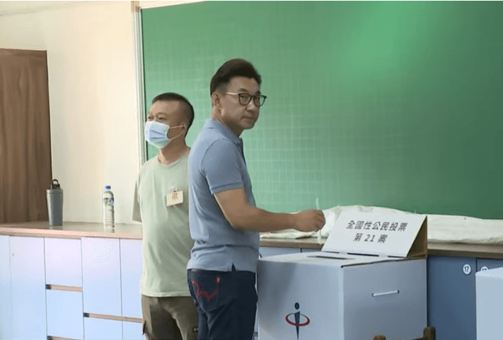 記者黃瀞萱:「主播、觀眾好,今天是823投票,現在記者位在台中豐村國小,這裡是第八選區江啟臣的選區,而他在早上8點10分左右與太太現身投開票所,江啟臣穿著灰色POLO衫,一度神情看起來輕鬆,不過豐村國小這裡只有一處投開票所,所以江啟臣也是跟著大概排隊10分鐘,才順利進入投開票所投票。」