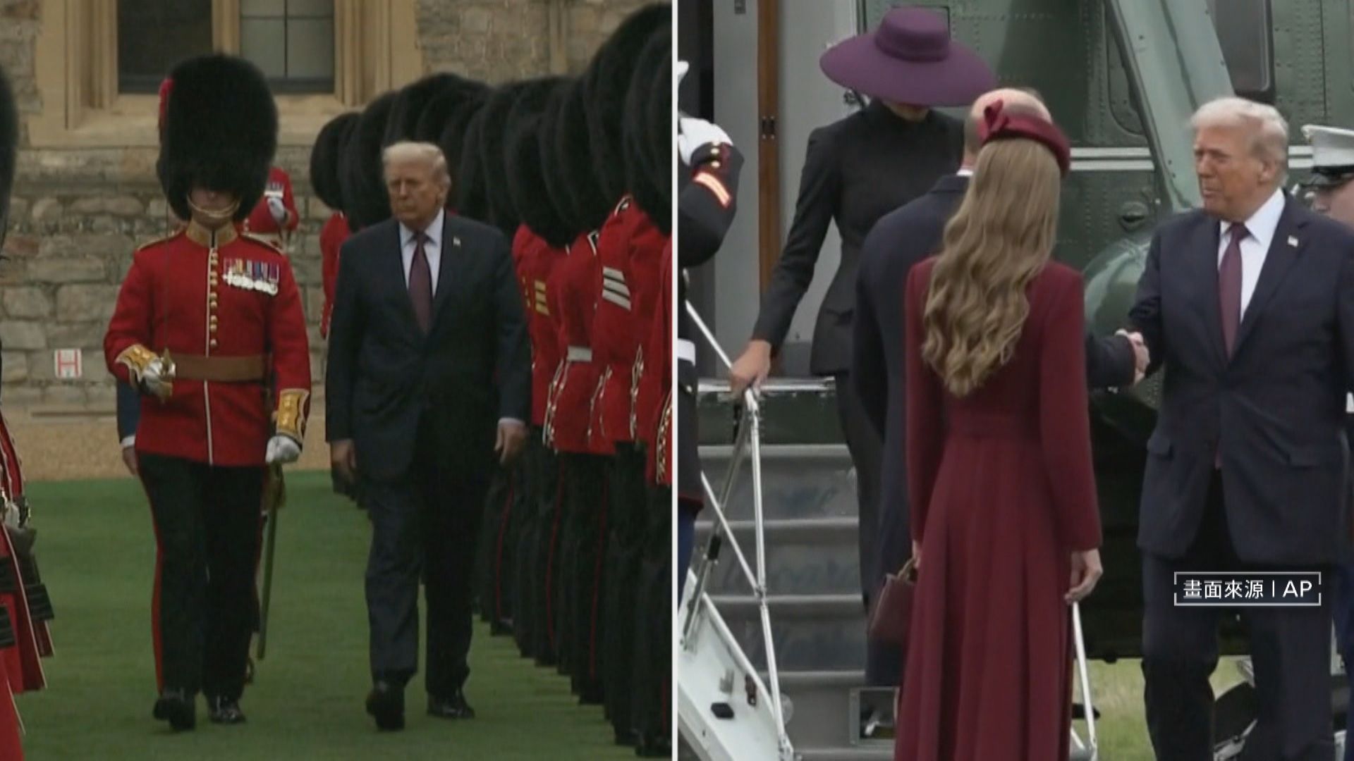 川普抵達溫莎城堡時,走在查爾斯三世前面檢閱儀隊,另外,川普下機後與威廉王子握手時更拍了對方手臂,引發民眾討論,有專家解釋,訪問國元首通常在檢閱儀隊時需走在前方握手或輕拍手臂,也並不違反正式禮節。美國總統川普:「這無疑是我人生中最高的榮譽之一,對您和您的國家都充滿敬意」。