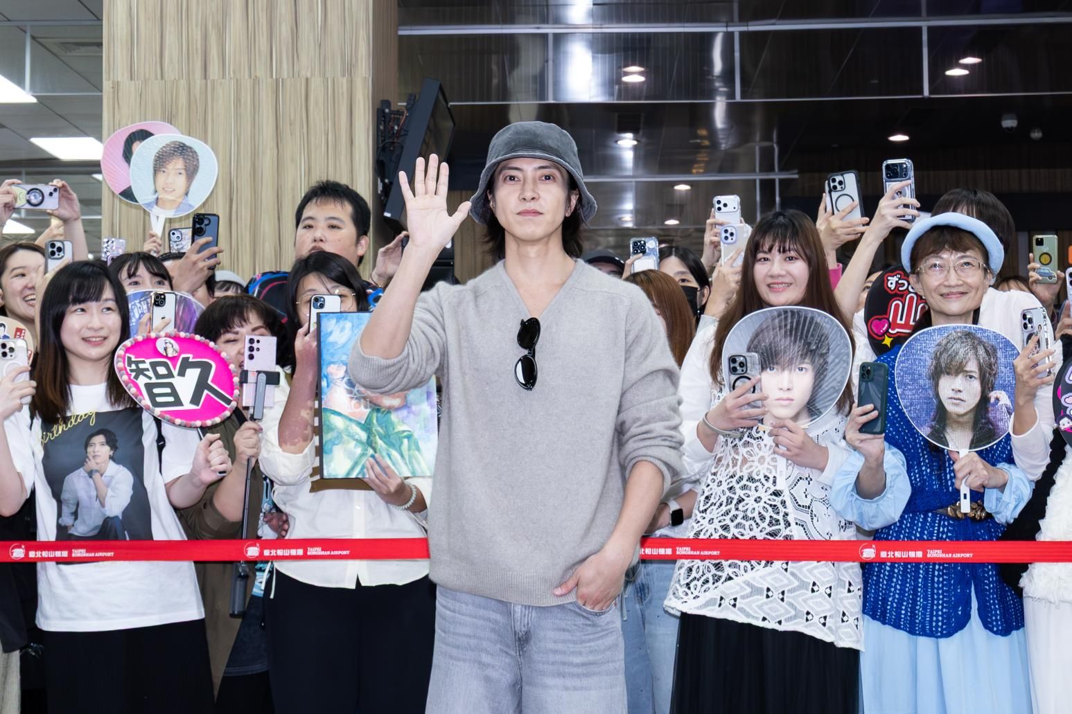 日本人氣男星山下智久將於明(15日)在Legacy TERA舉行粉絲見面會,繼2011年後,睽違14年以個人身分再度在台舉辦專場。今(14日)下午3點多山下智久從松山機場入境,吸引約700名粉絲接機,身穿針織衫搭漁夫帽的他一現身,立刻引爆粉絲熱情尖叫聲。