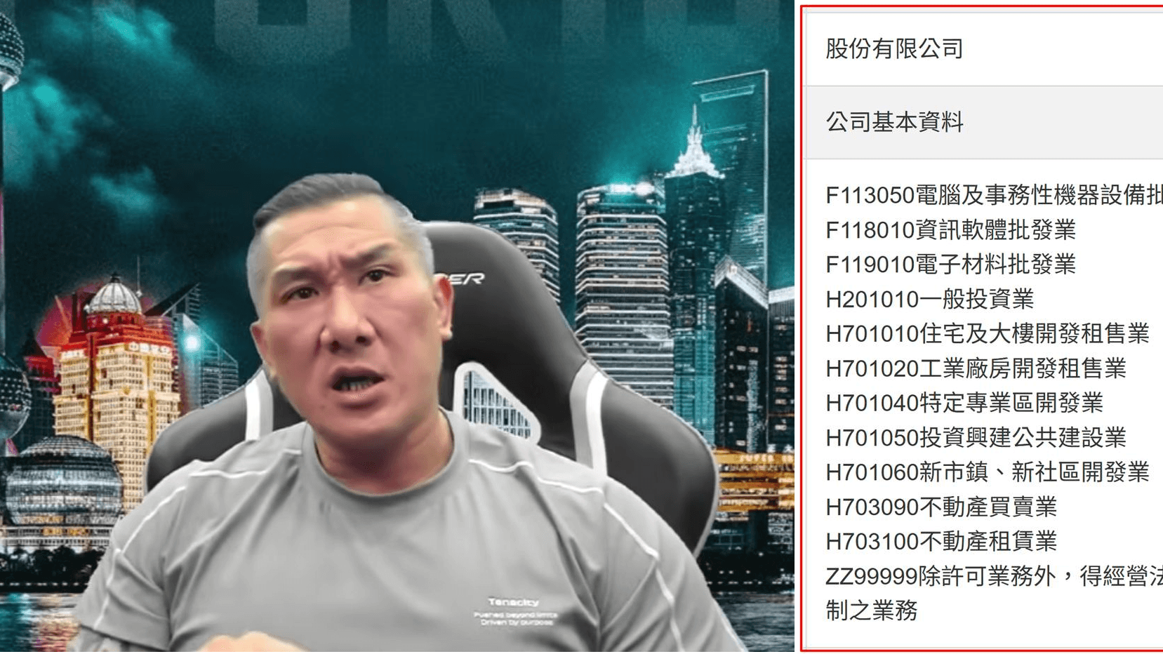 四叉貓進一步查詢「飆悍投資股份有限公司」的基本資料,發現該公司的代表人為陳之漢,其登記的營業項目包含了多項不動產相關業務,例如住宅及大樓開發租售業、特定專業區開發業、不動產買賣業、不動產租賃業。四叉貓因此質疑:「這是投資不動產相關的公司嗎?是在炒飯還是炒地皮?」