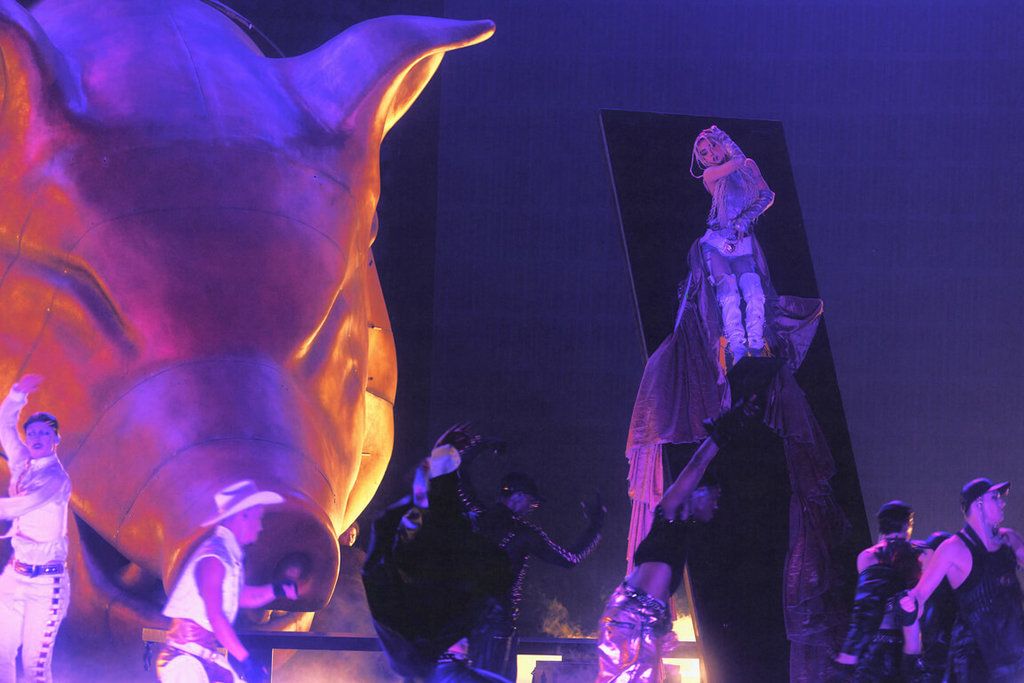 而在所有巨型道具之中,最令人難忘的莫過於第二篇章〈PLEASURE ECHOES PAIN(愉悅在苦痛中迴盪)〉中登場的「貪婪金豬」,不僅同時肩負JOLIN的霸氣坐騎與主舞台核心裝置,更內建讓全場歌迷嗨翻的「吐鈔機」功能,普發「愉悅紙鈔」,集視覺震撼、敘事象徵與娛樂效果於一身,可說是功能性與話題性兼具的舞台焦點。不過也正因為「一豬多用」、內部結構極為複雜,製作成本價格不斐,四噸重的豬體連同運費便高達120萬美金(約台幣3,600 萬元),且必須包下整架貨機才能完整運送來台,也因此讓工作人員趣稱它是「坐飛機來的豬」,堪稱名副其實、身價不凡的「金豬」,也再次印證 JOLIN 演唱會在製作規格與舞台美學上的極致追求。
