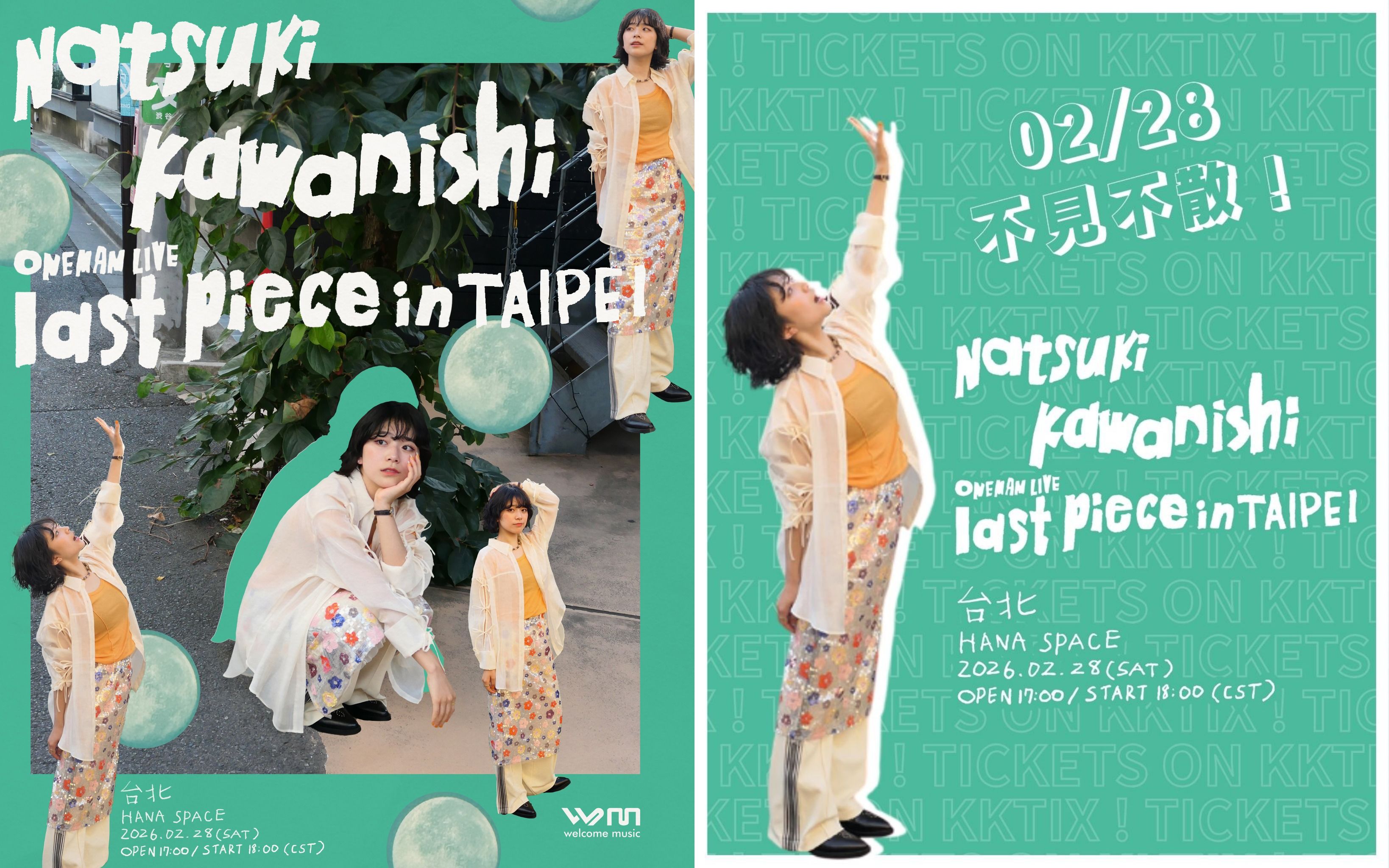 「川西奈月 ONEMAN LIVE last piece In Taipei」將於2月28日(六)晚間6點,在台北HANA SPACE舉行,票價為新台幣1580元,已在KKTIX熱賣中;更多演唱會相關詳情可洽主辦單位Welcome Music官方社群專頁。