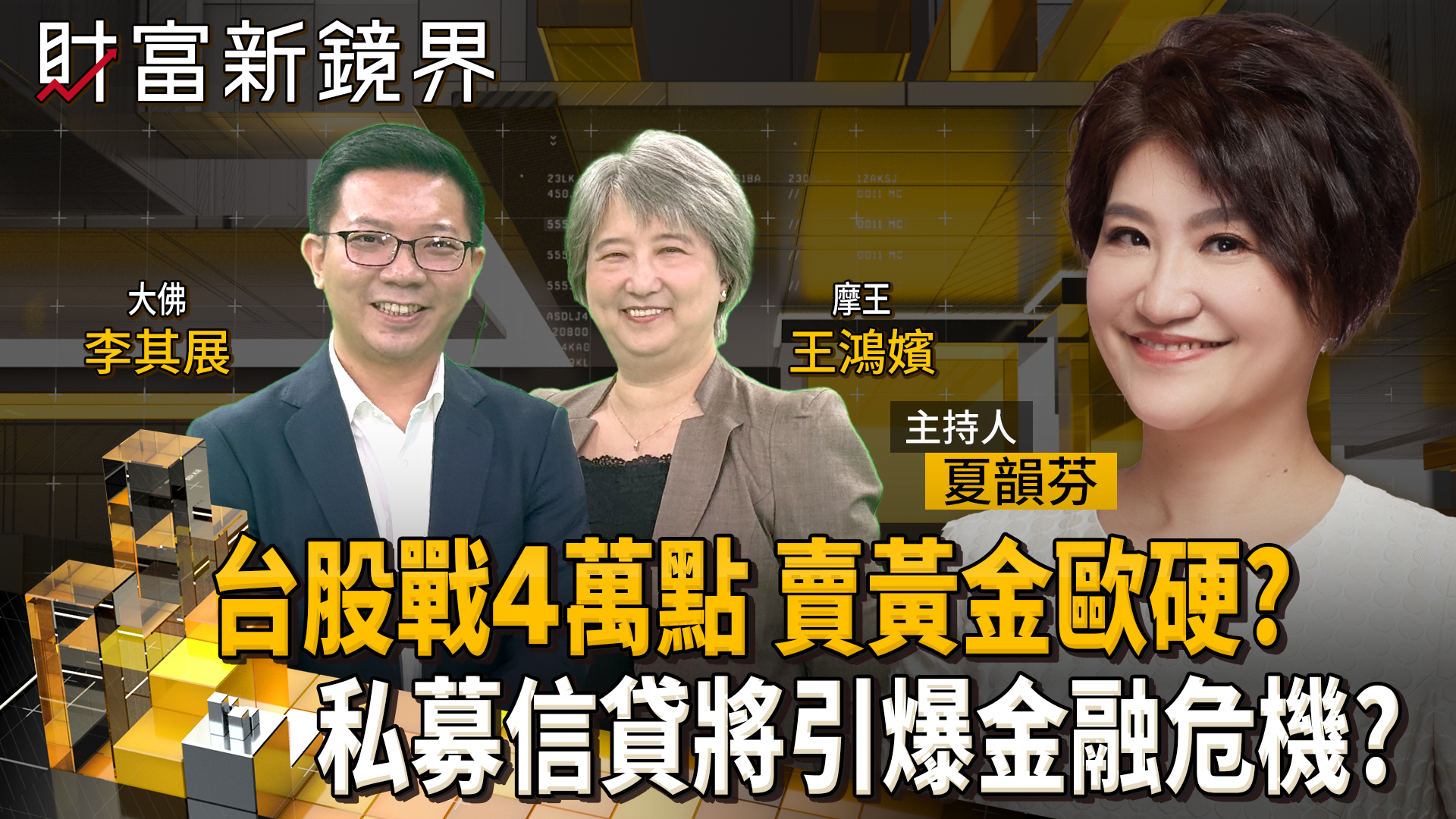 川普延長停火協議,卻持續海上封鎖伊朗,中東局勢混沌不明,台股上週仍然狂漲逾2000點,持續改寫新高,距4萬點不到3%,可是悶了好久的黃金打也跌、不打也跌,說好的「砲聲一響黃金萬兩」怎麼失靈了?金價3月大跌將近11%,創2013年以來單月最大跌幅,4月繼續震盪,進入AI時代,傳統投資避險邏輯被顛覆,連金字塔頂的私募基金都出現爆雷潮,一般投資大眾的資產配置,又該怎麼調整?