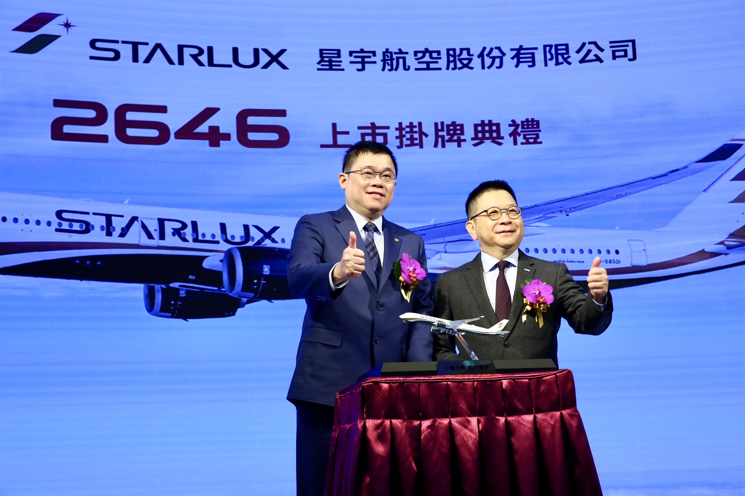 眾所矚目的星宇航空(2646)今(25)日以每股20元掛牌上市,星宇航空張國煒董事長、證交所林修銘董事長、第一金證劵陳致全董事長及安永會計師事務所傅文芳所長共同主持上市掛牌典禮,並在星宇航空員工的見證下,一同於09:00鳴鼓開盤。