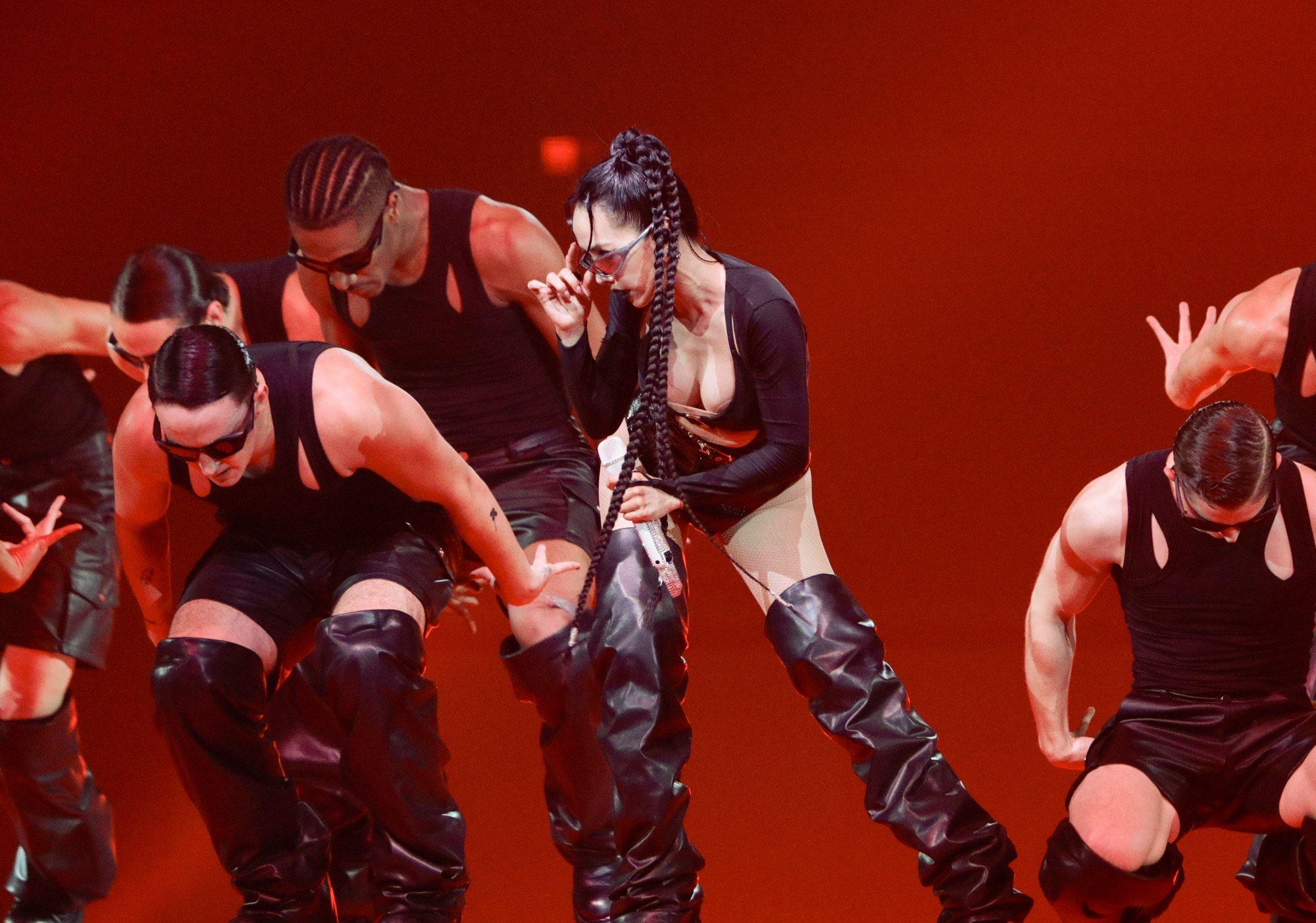 JOLIN蔡依林今晚(21日)擔任2025 hito流行音樂獎擔任典禮壓軸演出,是她推出新專輯後,全球首度亮相演出,她站在三層樓高的地方演唱全新單曲〈Pleasure〉,隨後挺傲人G奶演唱〈呸Play〉,在12位外國男舞者伴舞下,充滿「國際蔡」的氣勢,在小巨蛋進行一場前所未有的感官盛宴。