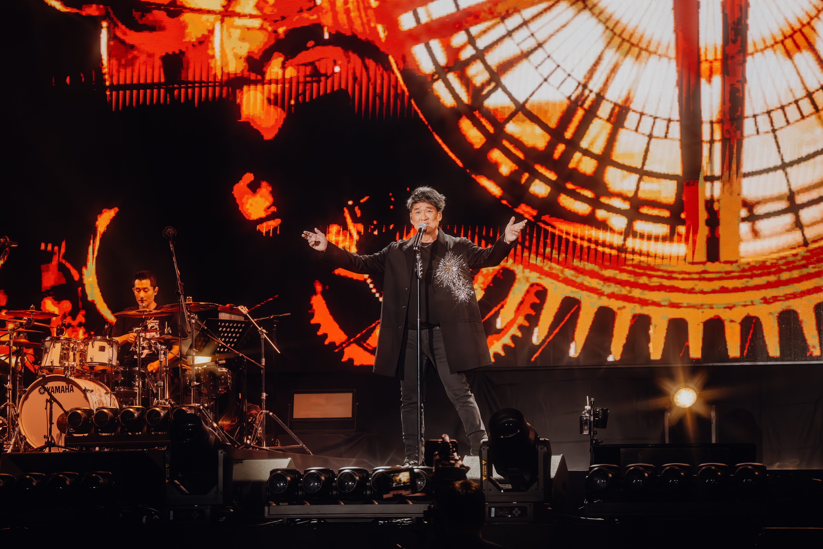 現場不只情歌催淚,〈刀劍如夢〉、〈難念的經〉等武俠劇主題曲更喚起觀眾的武俠情懷。周華健分享與兒子周厚安追劇趣事,兒子看完《天龍八部》後說喬峰是廣東人,他只好解釋「是香港電視台拍的啦!」引得全場大笑。