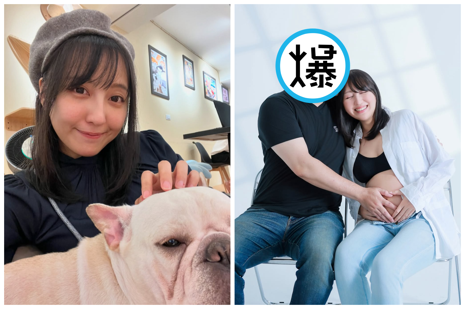 織織今在IG分享兩張懷孕時與老公拍的照片,第一張織織露出孕肚,老公貼著她的頭,夫妻的手都放在孕肚上,一起比出愛心手勢,相當溫馨。第二張黑白照則是老公單膝跪地,雙手捧著孕肚,低頭輕吻,織織則看著他大笑,幸福滿溢。