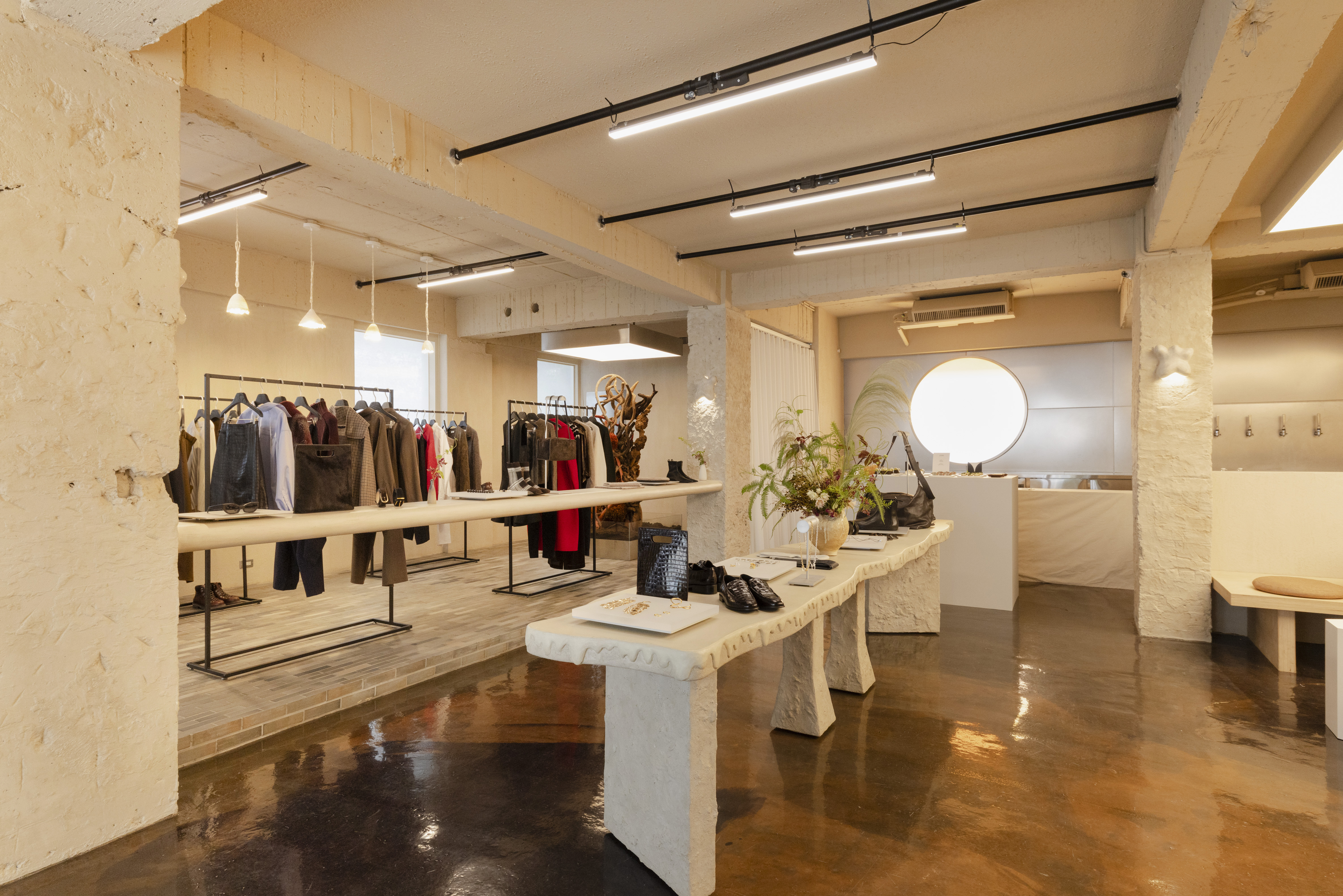 除了秀場服裝首次亮相之外,同步展示的2025秋冬系列新品,主色圍繞黑、金屬灰、軍綠與海軍藍;洋裝款式以垂墜感輪廓為系列注入柔和的動態感,休閒寬鬆的針織衫與外套則搭配半身窄裙,勾勒自信沉穩的女性氣質。男裝系列從斜紋軟呢般質感的紋針織,到混色、羅紋的運用為服裝注入溫度與深度,流暢的輪廓剪裁體現服裝的百搭性與簡約之美。