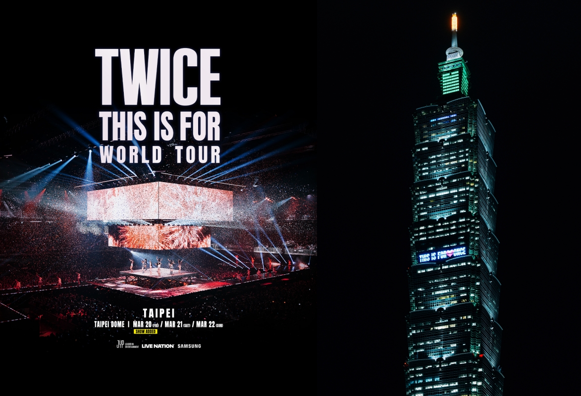 TWICE 今(4日)率先驚喜亮相台北地標!她們以「第一組國際團體歌手登上台北101點燈打字」之姿,於今日晚間6點至10點在台北101北面外牆點亮訊息,「THIS IS FOR ♥ONCE♥」的字樣,紅色愛心還會不停轉動,提前為全台ONCE帶來最浪漫的宣告。同時官方也公布原訂2026年3月21、22日兩場外,再加碼3月 20日一場,成為首個在臺北大巨蛋舉辦三場演唱會的KPOP女團。