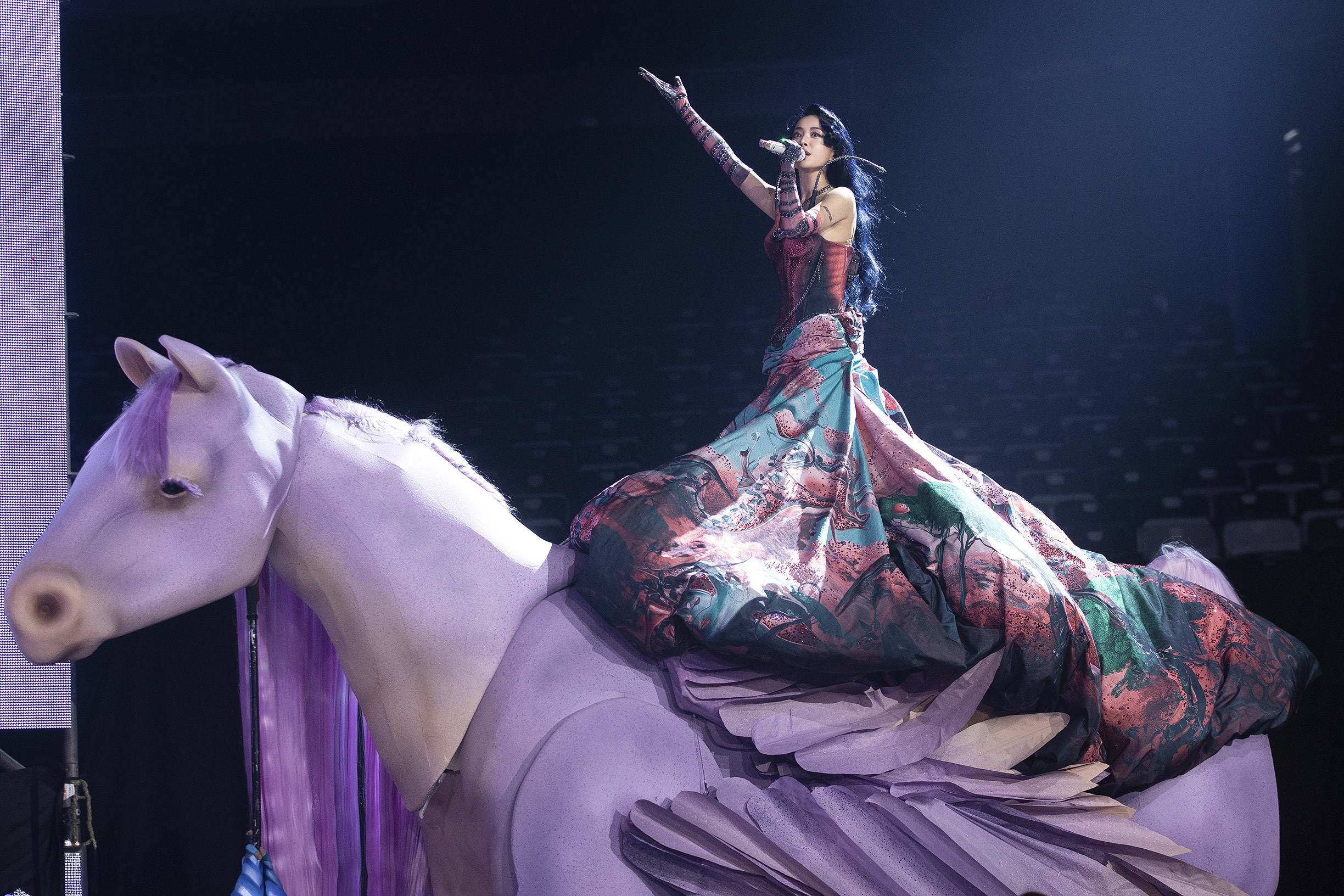 雖沒陪伴歌迷跨越2025年到2026年,蔡依林充滿奇幻旅程的《PLEASURE》大巨蛋演唱會誠意滿滿,一字馬、M字腿等動感熱舞超過150分鐘,除了公牛、巨蟒及金豬等,她還登上飛馬繞場一周,展現如遊樂園般的歡樂氛圍,蔡依林透露首場演出回家後,直到一、兩點還無法入睡,只好起床拉筋,恍惚間被自己的頭髮嚇到,她笑說:「怎麼有鬼?你們知道熬夜通常都會疑神疑鬼的。」