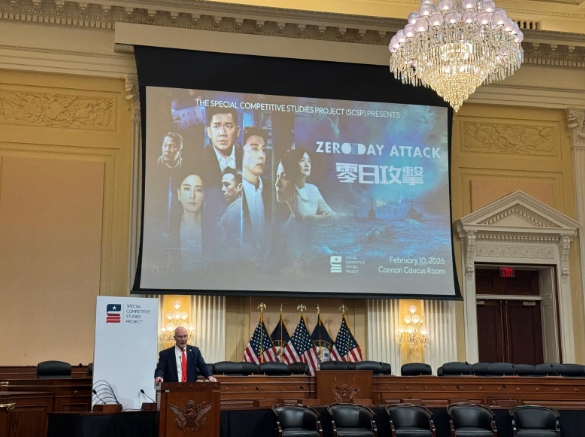 本場國會放映由美國華府智庫「Special Competitive Studies Project(SCSP)」籌劃主辦,該組織是由前谷歌執行長施密特創立的跨黨派非營利智庫與基金會,長期關注人工智慧與新興科技如何改變美國國家安全、經濟與社會結構,其核心使命是提出政策建議,協助美國在2030年前維持全球科技與經濟競爭優勢。《零日攻擊》受SCSP邀請在華府放映與對談,共包括在智庫辦公室與國會共2場次,均吸引等不少政策圈內官員與學者到場,象徵台灣經驗與台海議題正式進入美國國安與科技戰略社群的核心討論場域。