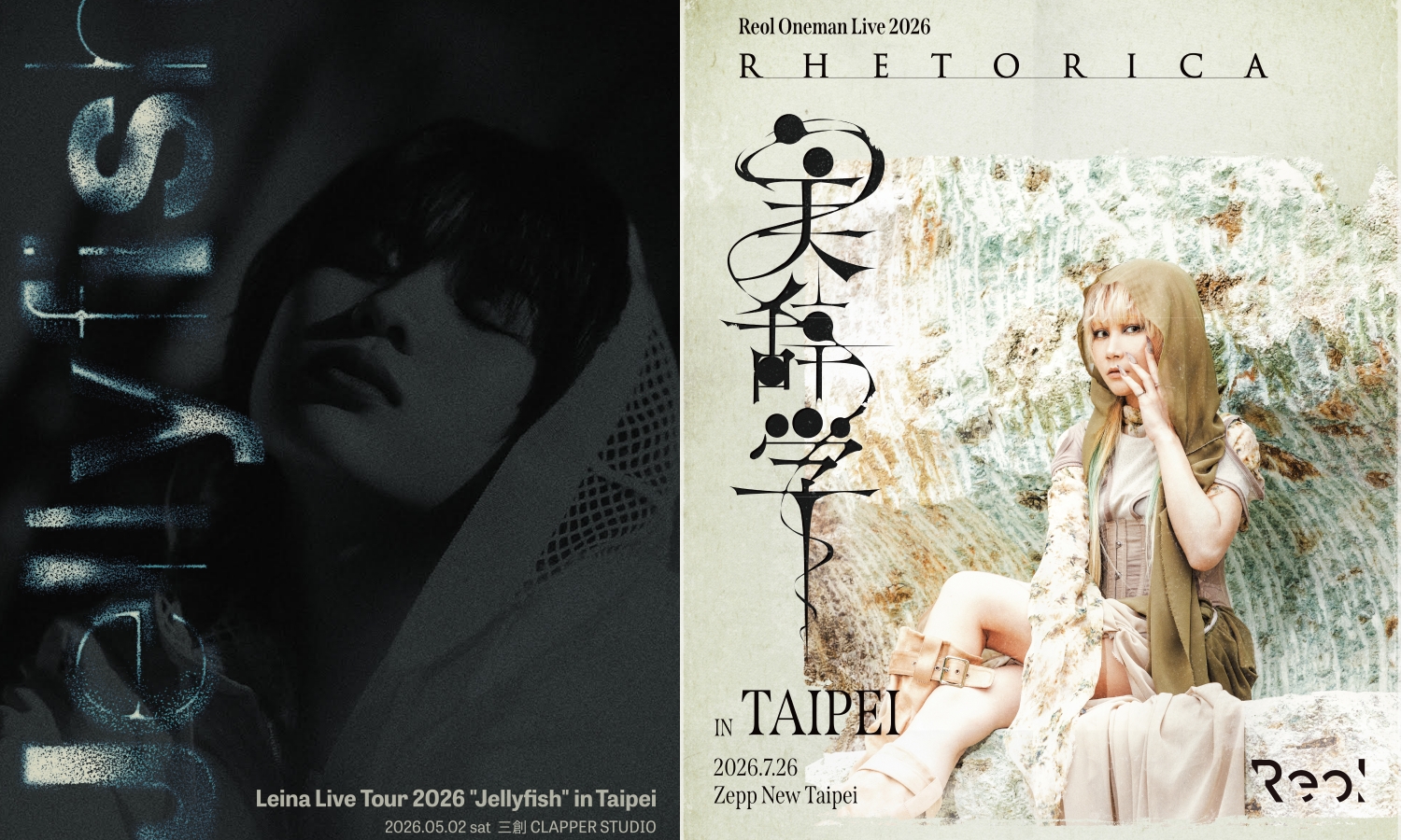 日本樂壇兩位風格鮮明的創作女聲接力宣布來台開唱,Z世代創作新人Leina將於5月2日在三創CLAPPER STUDIO舉辦首次台北專場;而電音系人氣歌手Reol也宣布7月26日在Zepp New Taipei帶來「Reol Oneman Live 2026 美辭學 in TAIPEI」,為台灣樂迷帶來截然不同的音樂現場。