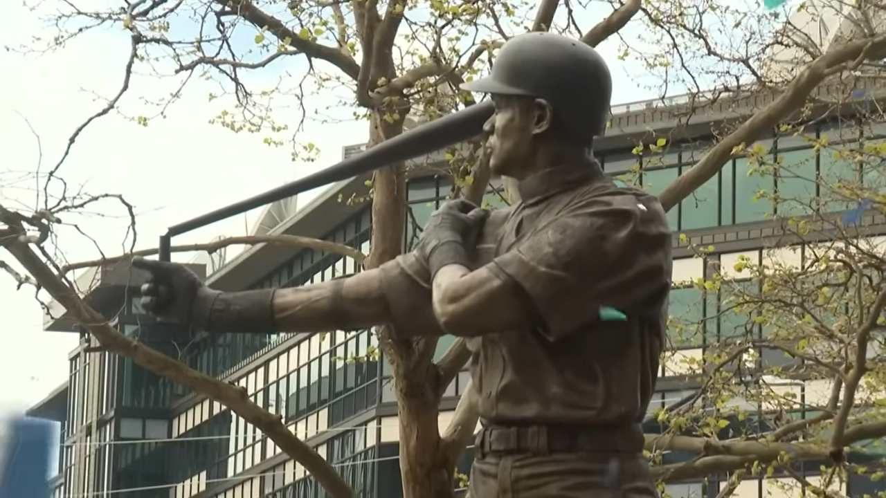 根據外媒報導,已退役的日籍名將鈴木一朗近日回到水手隊參加自己銅像的揭幕典禮,該銅像由芝加哥藝術家盧塞拉(Lou Cella)操刀,刻畫了一朗準備打擊時的招牌姿勢:右手握棒向前伸展,左手拉著球衣袖子。